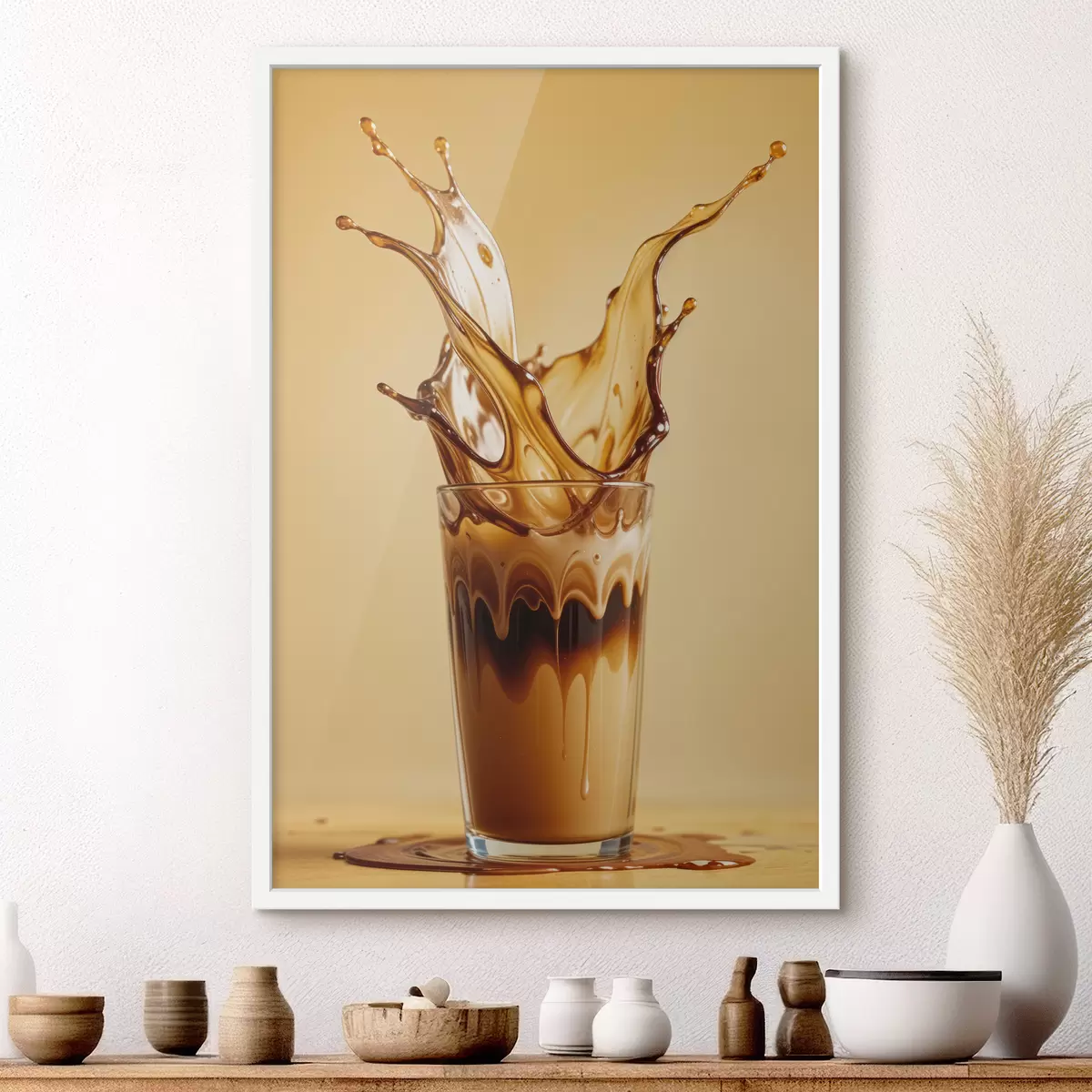 Plakatas Kavos pripildyta taurė su dramatišku purslų efektu sukuria abstraktų ir dinamišką vaizdą f40165