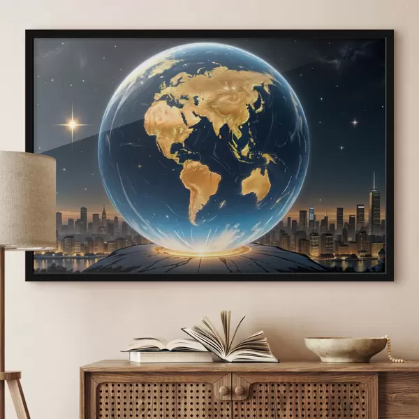 Plakatas Išsamus, fotorealistiškas Žemės planetos, plūduriuojančios kosminiame peizaže, atvaizdas f40178