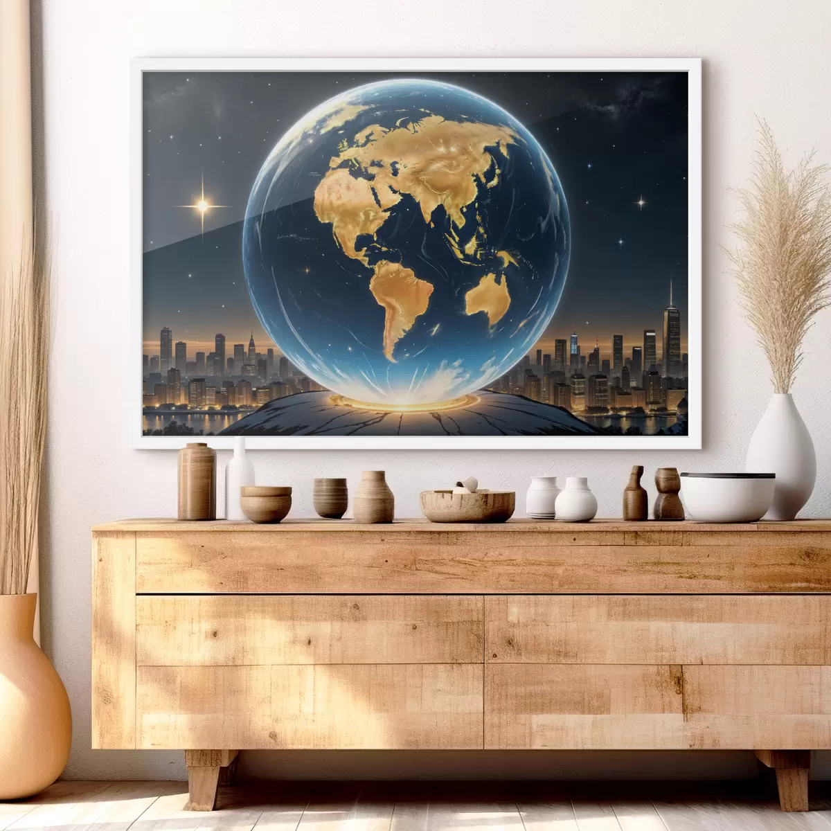 Plakatas Išsamus, fotorealistiškas Žemės planetos, plūduriuojančios kosminiame peizaže, atvaizdas Ne f40178