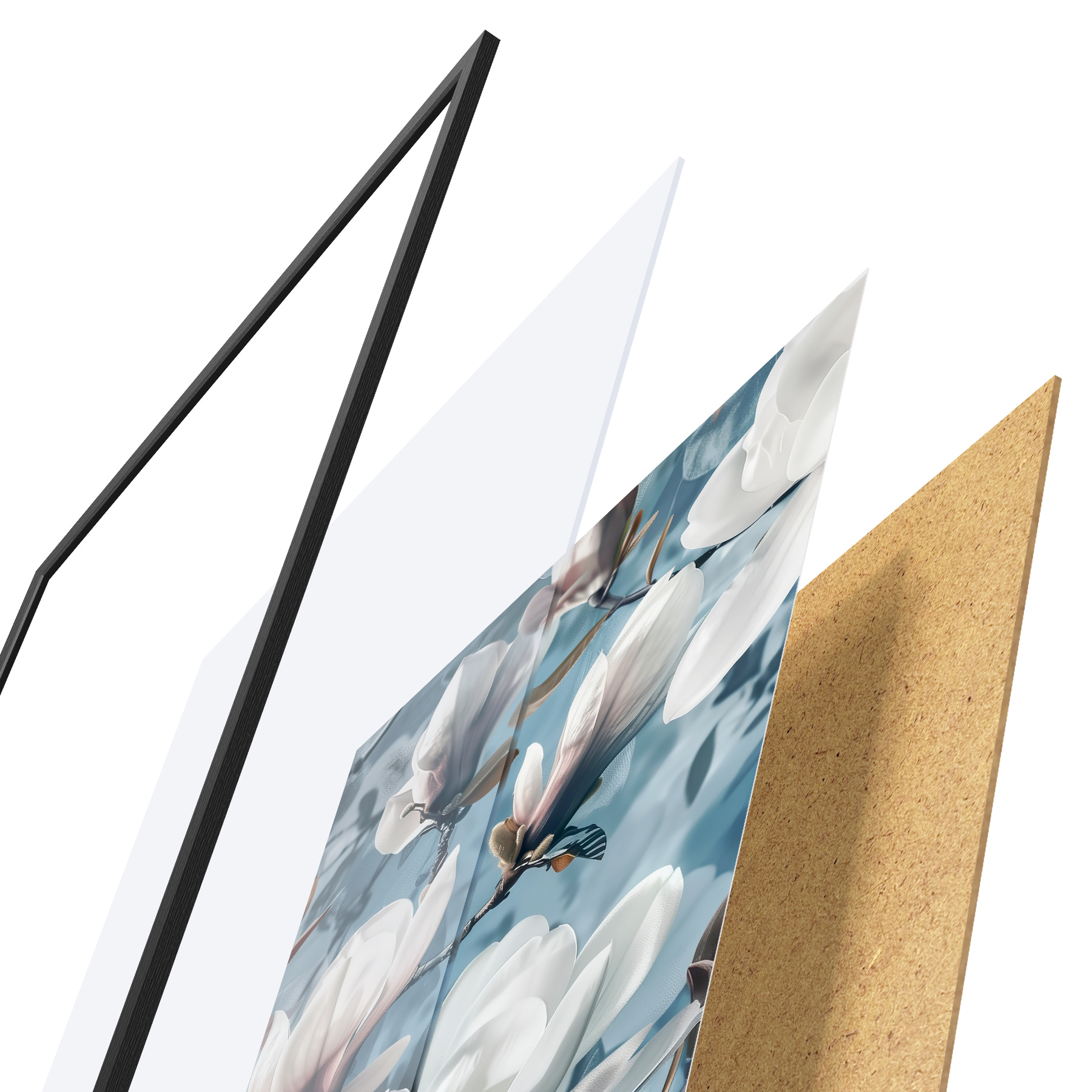 Plakatą sudaro rėmas, pleksiklas, atspausdintas vaizdas ir medžio drožlių plokštės pagrindas. Plakatą galima iš karto pakabinti ant sienos dėl kitoje pusėje esančių laikiklių.