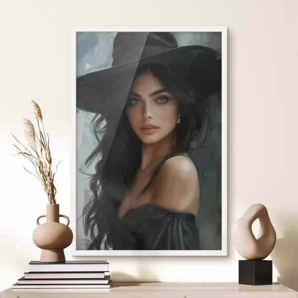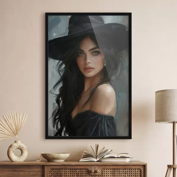 Plakatas Mergina juoda skrybėle f40196