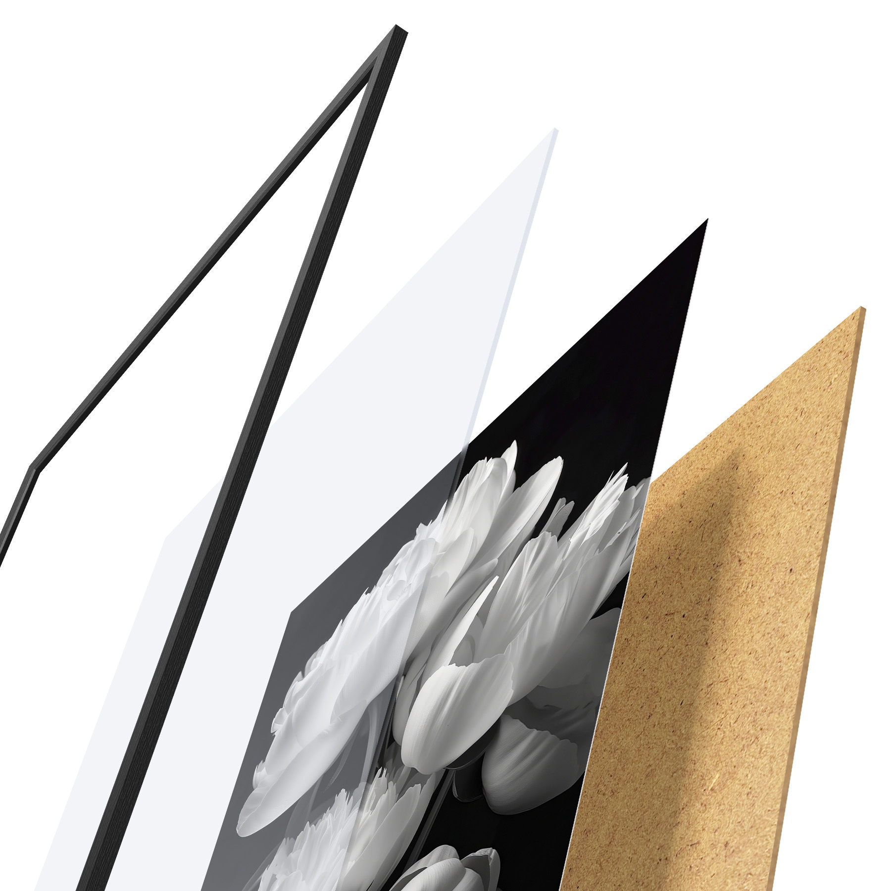 Plakatą sudaro rėmas, pleksiklas, atspausdintas vaizdas ir medžio drožlių plokštės pagrindas. Plakatą galima iš karto pakabinti ant sienos dėl kitoje pusėje esančių laikiklių.