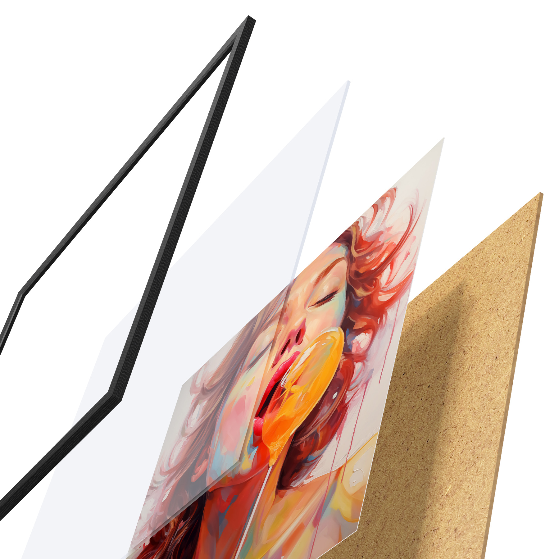 Plakatą sudaro rėmas, pleksiklas, atspausdintas vaizdas ir medžio drožlių plokštės pagrindas. Plakatą galima iš karto pakabinti ant sienos dėl kitoje pusėje esančių laikiklių.