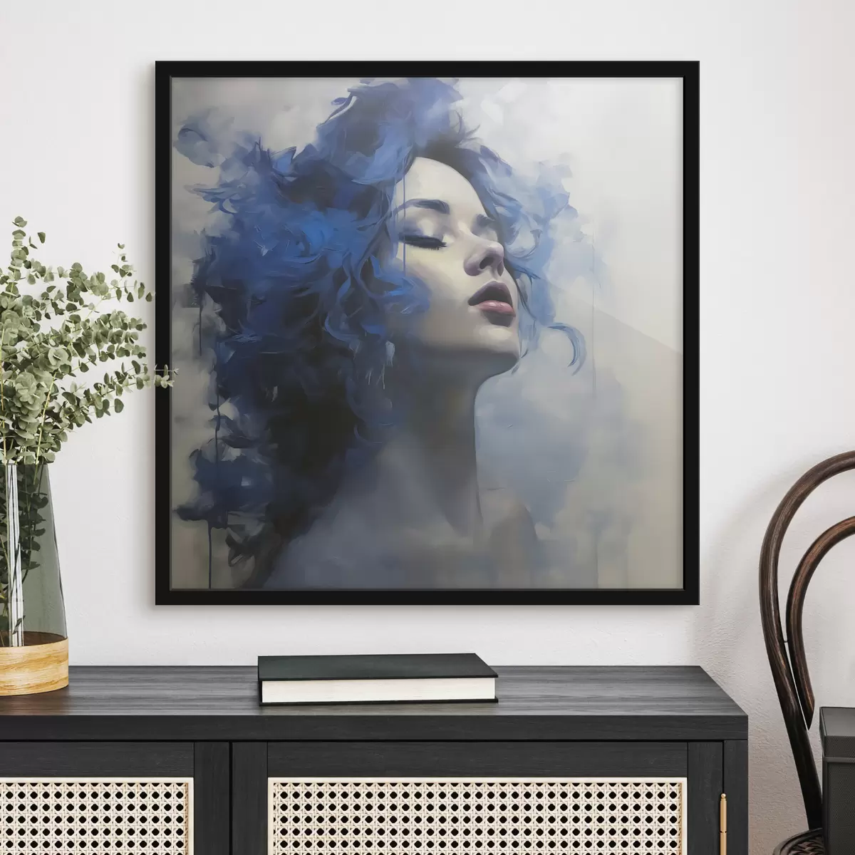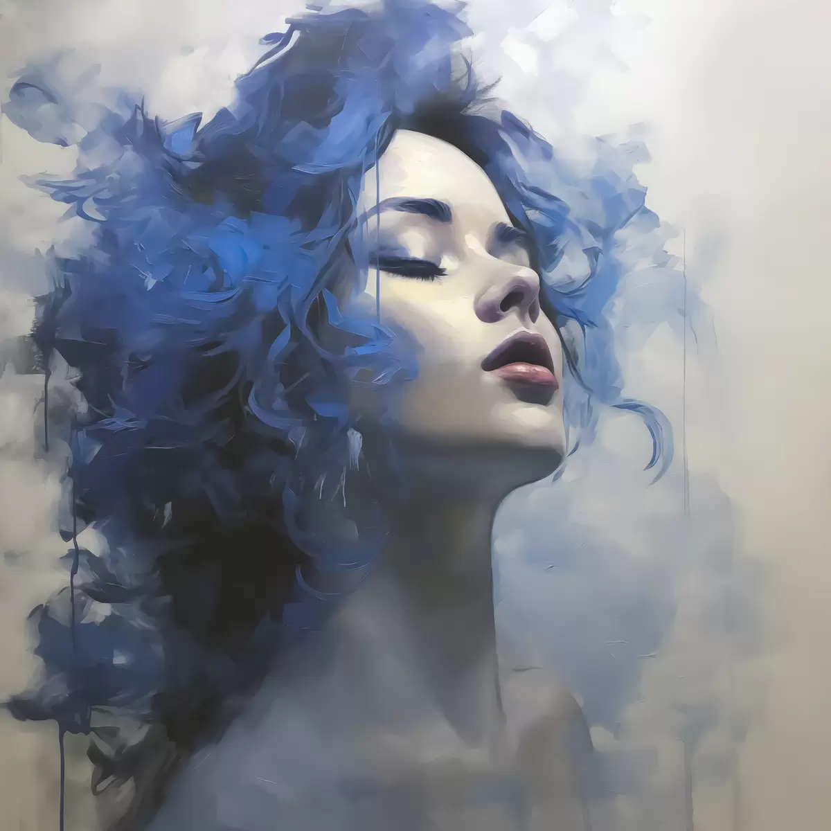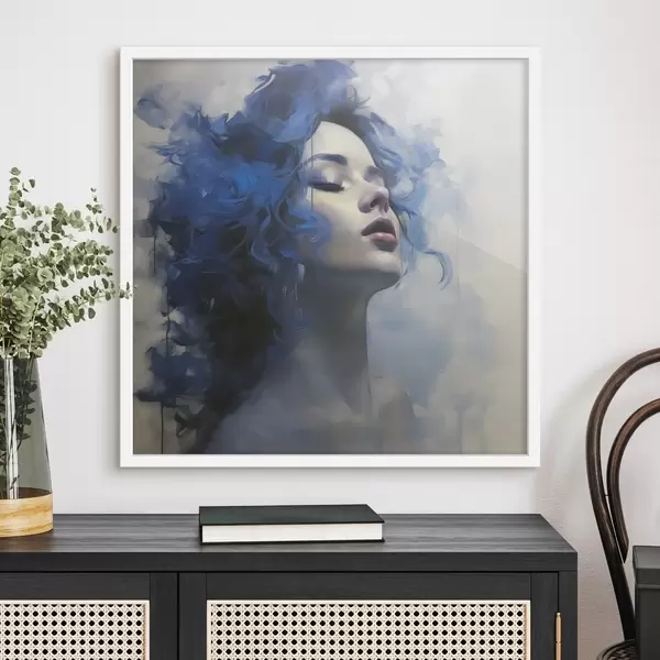 Plakatas Merginos mėlynais plaukais portretas pilkame fone f40218