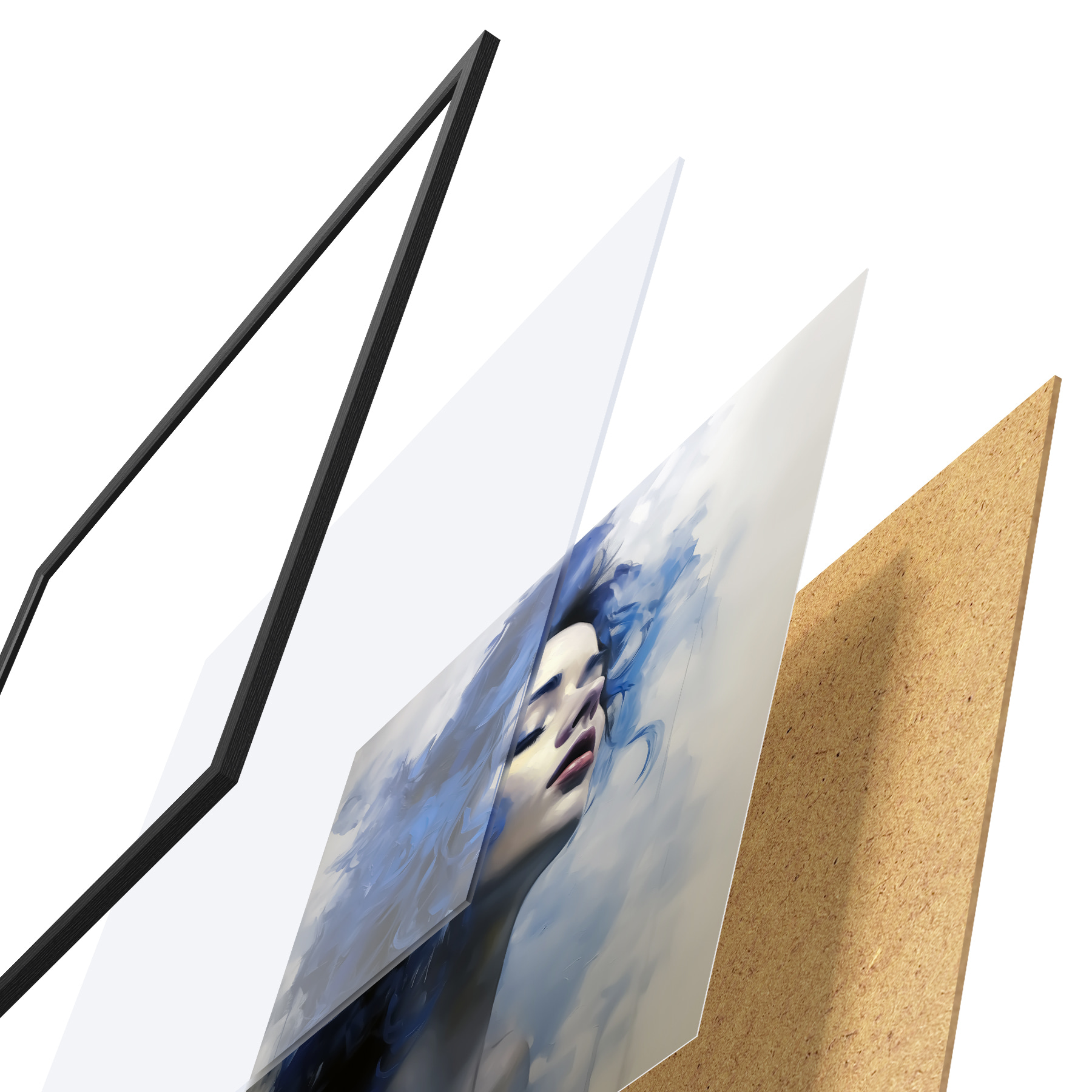 Plakatą sudaro rėmas, pleksiklas, atspausdintas vaizdas ir medžio drožlių plokštės pagrindas. Plakatą galima iš karto pakabinti ant sienos dėl kitoje pusėje esančių laikiklių.