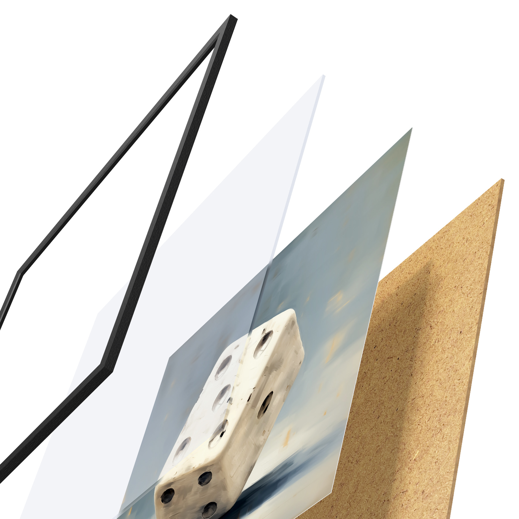 Plakatą sudaro rėmas, pleksiklas, atspausdintas vaizdas ir medžio drožlių plokštės pagrindas. Plakatą galima iš karto pakabinti ant sienos dėl kitoje pusėje esančių laikiklių.