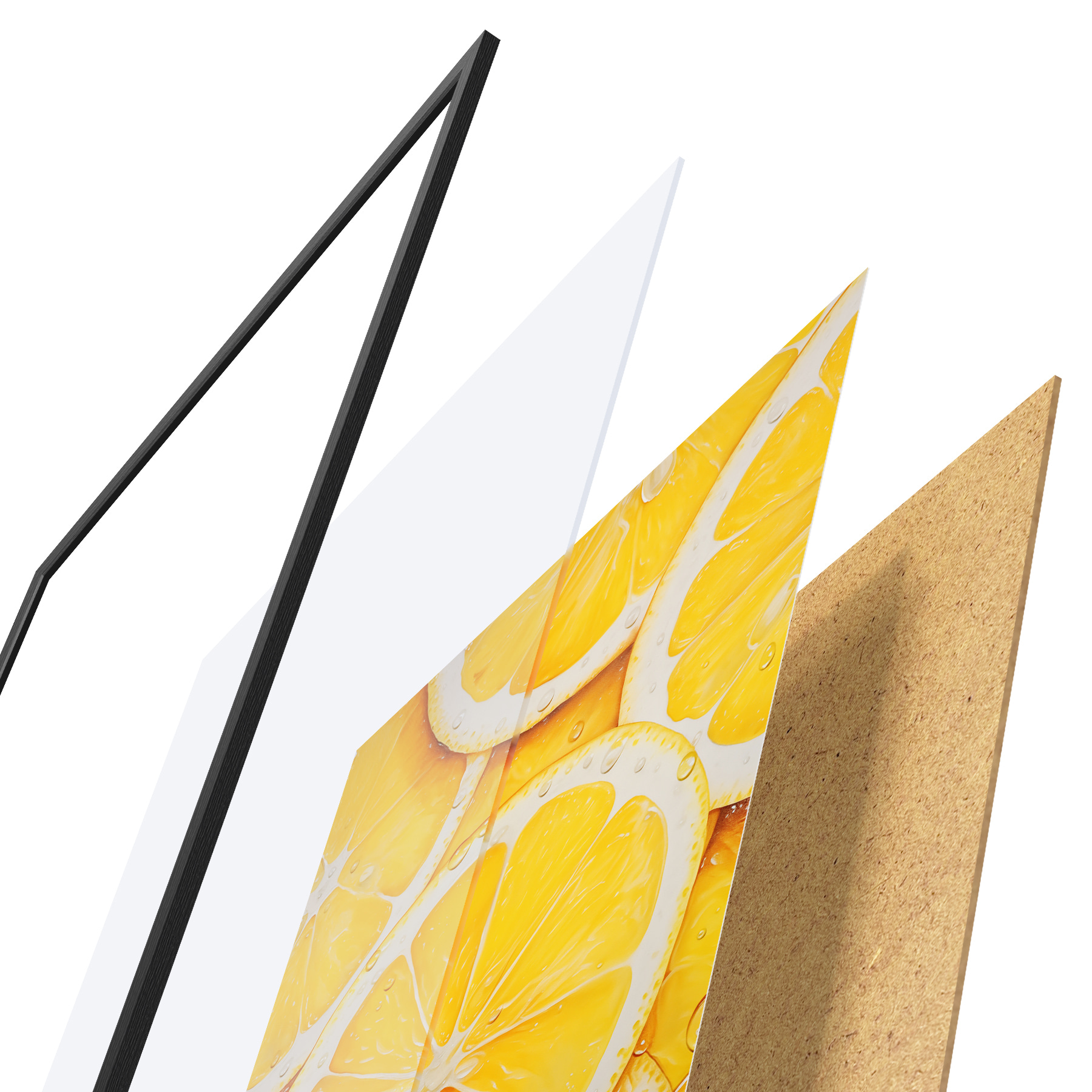 Plakatą sudaro rėmas, pleksiklas, atspausdintas vaizdas ir medžio drožlių plokštės pagrindas. Plakatą galima iš karto pakabinti ant sienos dėl kitoje pusėje esančių laikiklių.
