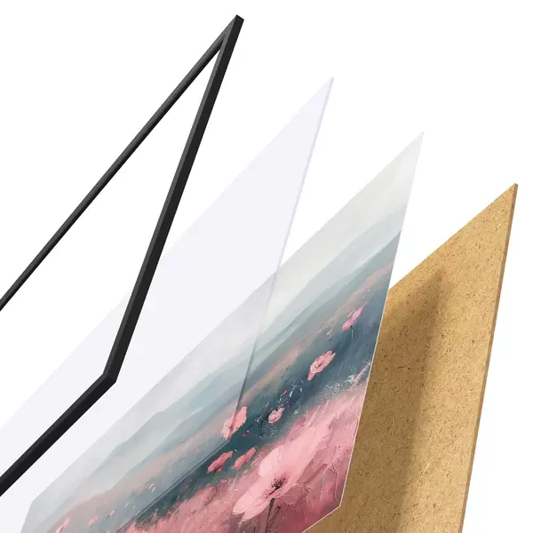 Plakatą sudaro rėmas, pleksiklas, atspausdintas vaizdas ir medžio drožlių plokštės pagrindas. Plakatą galima iš karto pakabinti ant sienos dėl kitoje pusėje esančių laikiklių.