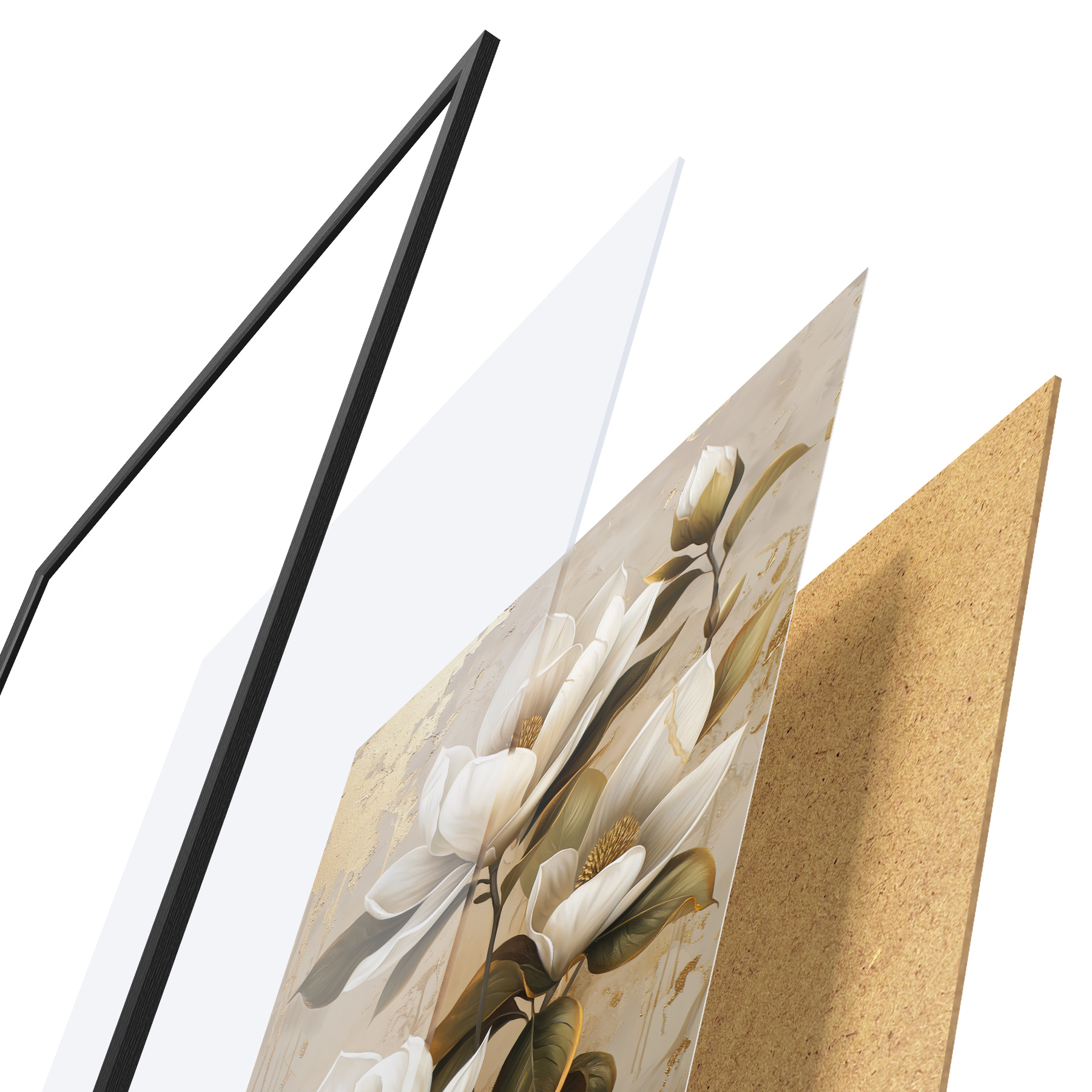 Plakatą sudaro rėmas, pleksiklas, atspausdintas vaizdas ir medžio drožlių plokštės pagrindas. Plakatą galima iš karto pakabinti ant sienos dėl kitoje pusėje esančių laikiklių.