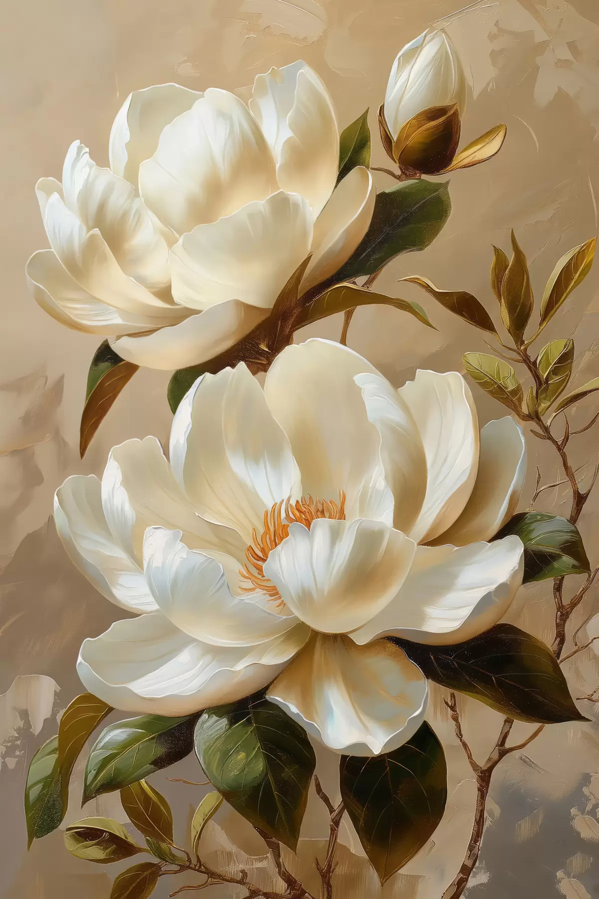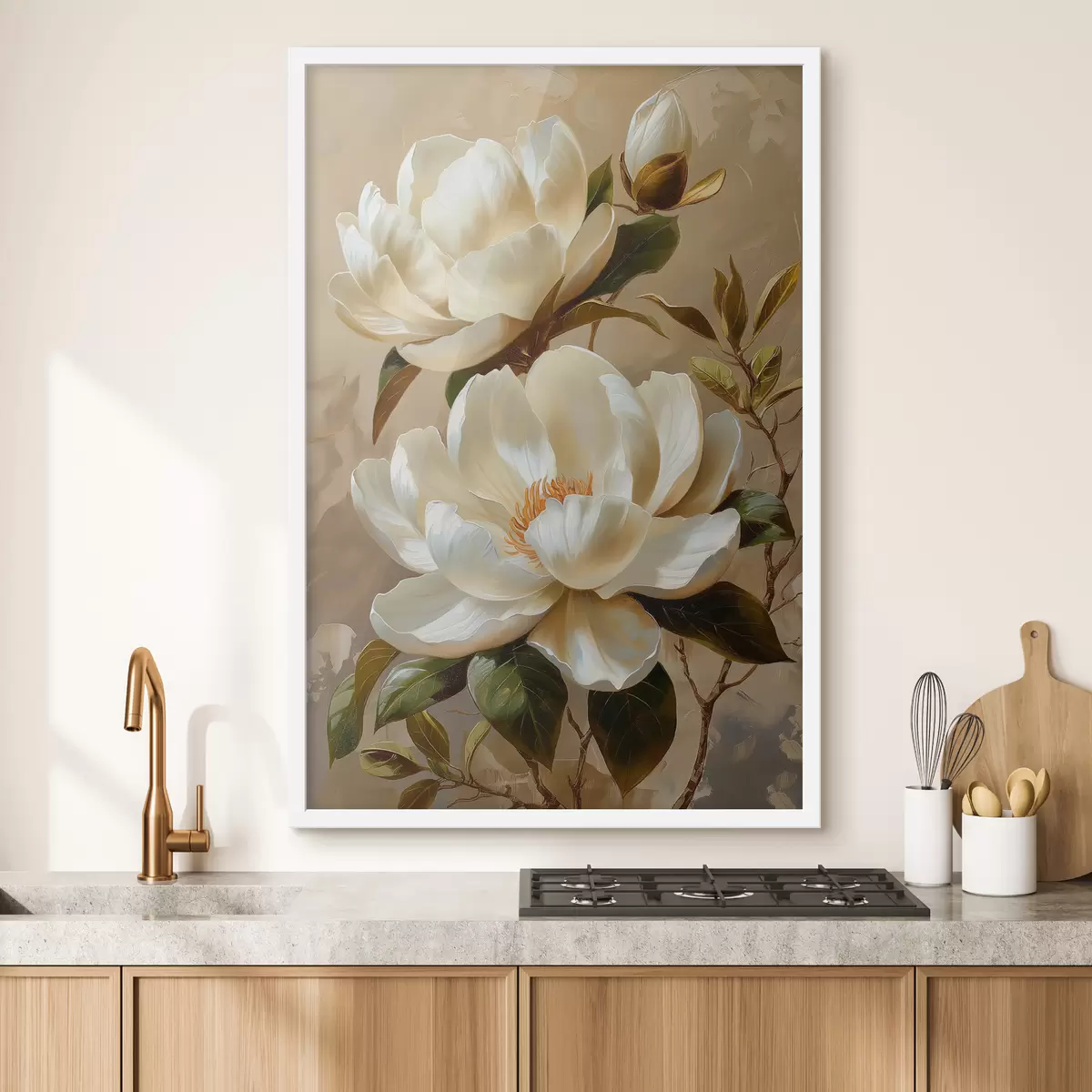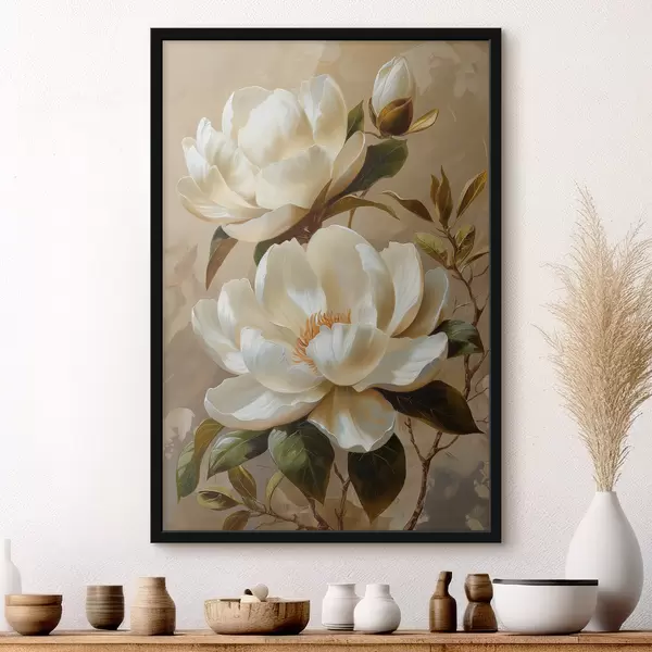 Plakatas sodrios smėlio spalvos gėlės f40237