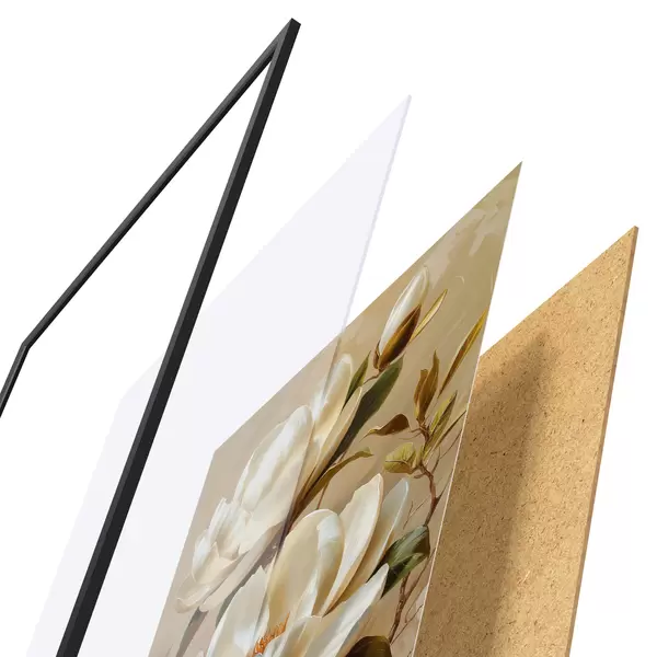 Plakatą sudaro rėmas, pleksiklas, atspausdintas vaizdas ir medžio drožlių plokštės pagrindas. Plakatą galima iš karto pakabinti ant sienos dėl kitoje pusėje esančių laikiklių.