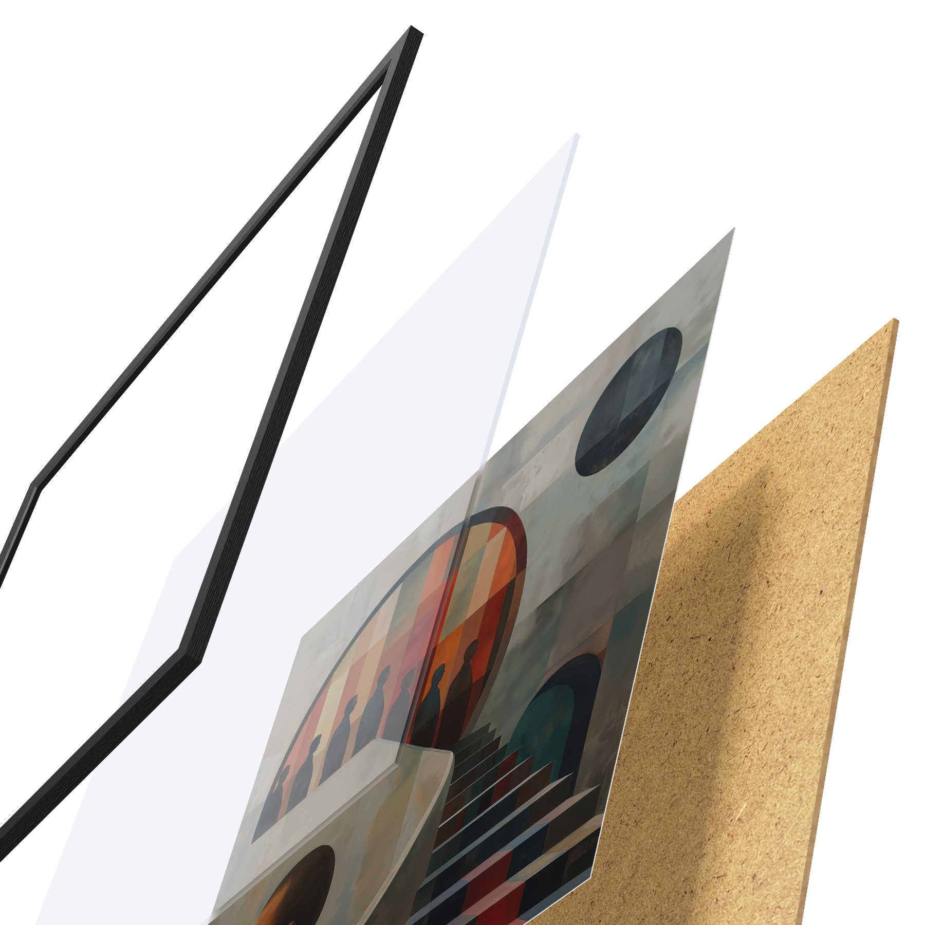 Plakatą sudaro rėmas, pleksiklas, atspausdintas vaizdas ir medžio drožlių plokštės pagrindas. Plakatą galima iš karto pakabinti ant sienos dėl kitoje pusėje esančių laikiklių.