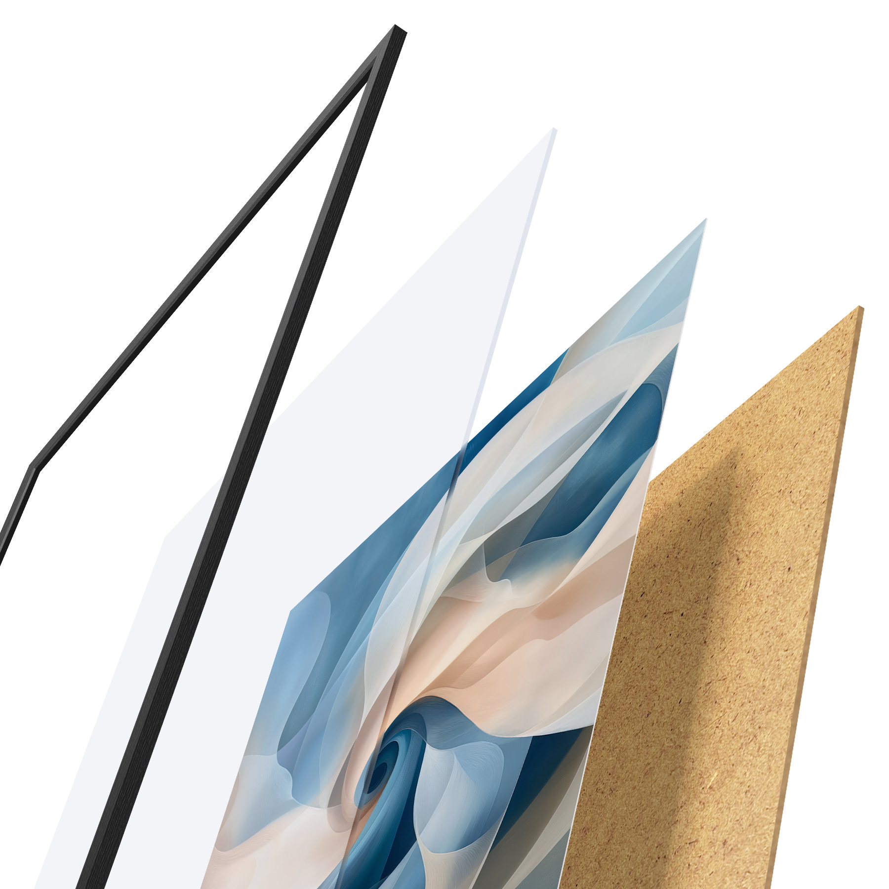 Plakatą sudaro rėmas, pleksiklas, atspausdintas vaizdas ir medžio drožlių plokštės pagrindas. Plakatą galima iš karto pakabinti ant sienos dėl kitoje pusėje esančių laikiklių.