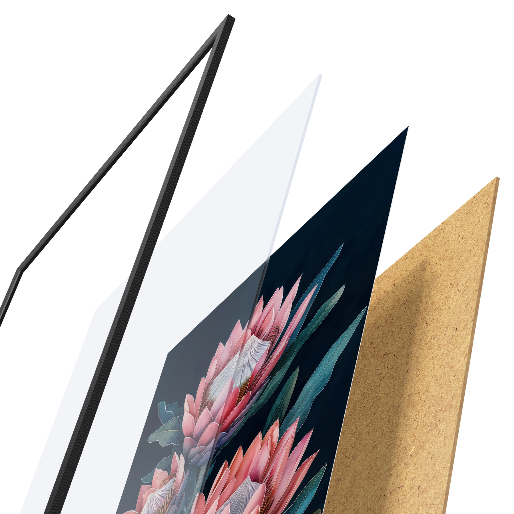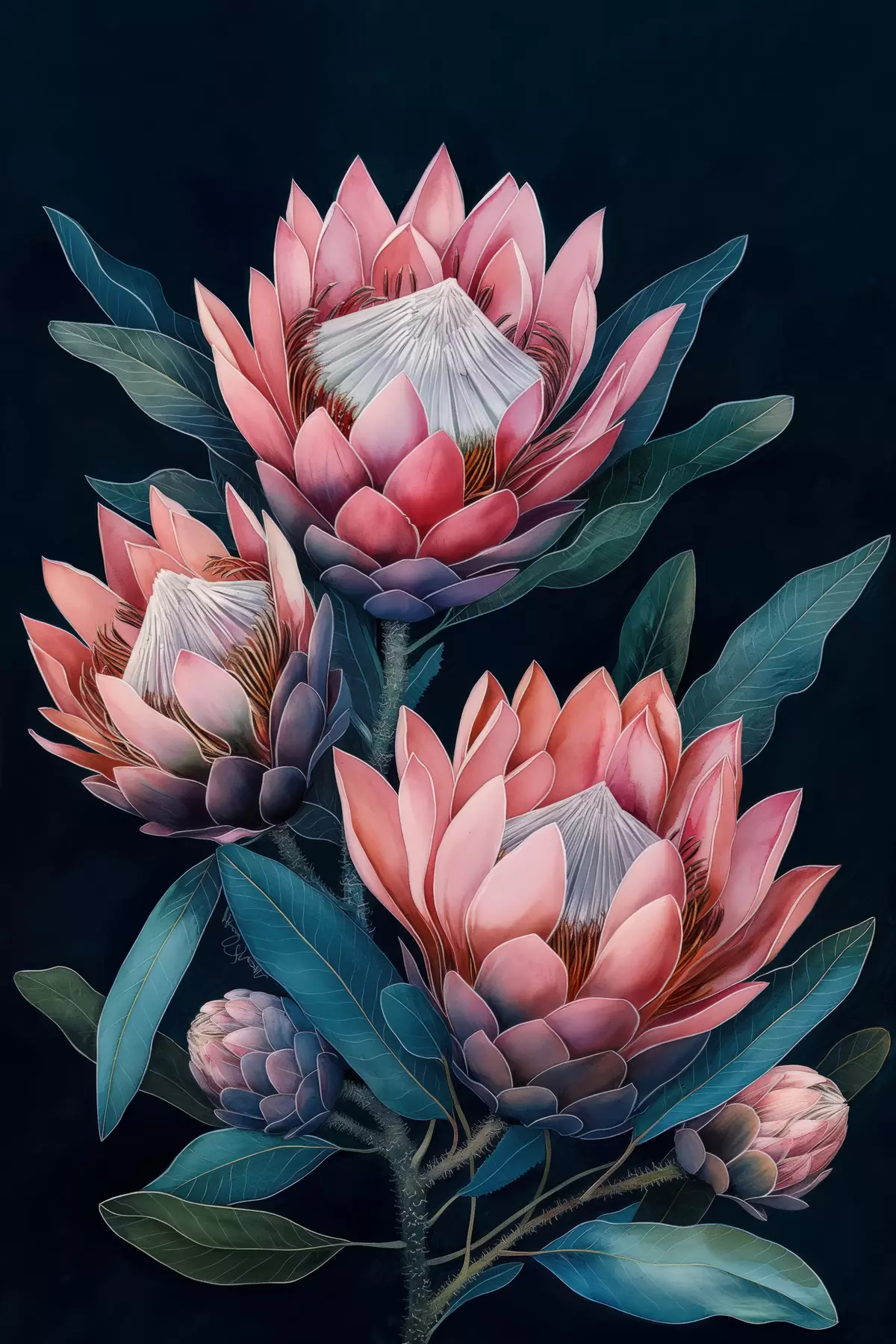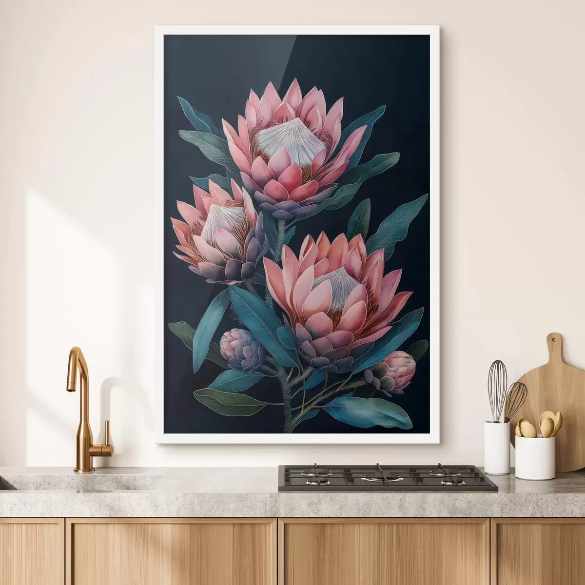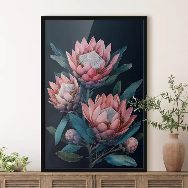 Plakatas protea puokštė tamsiame fone Ne f40257