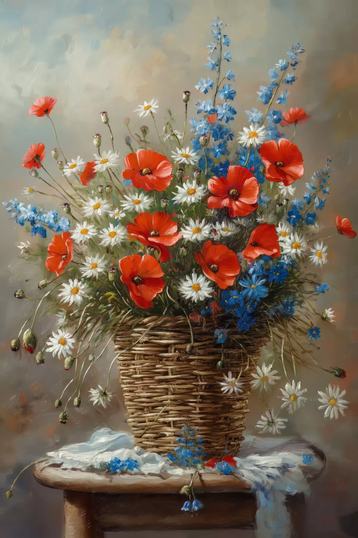 Plakatas lauko gėlių puokštė krepšelyje f40262
