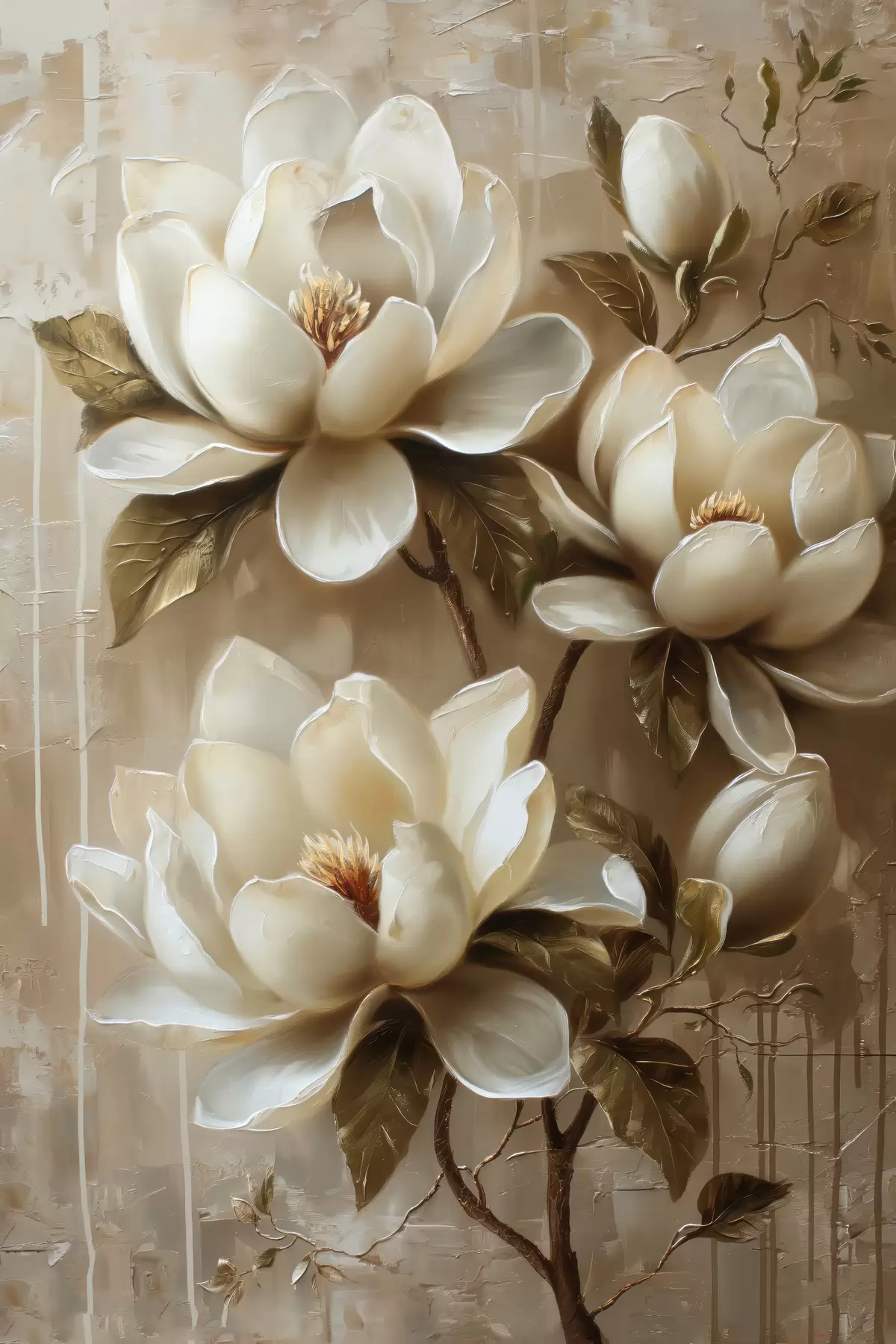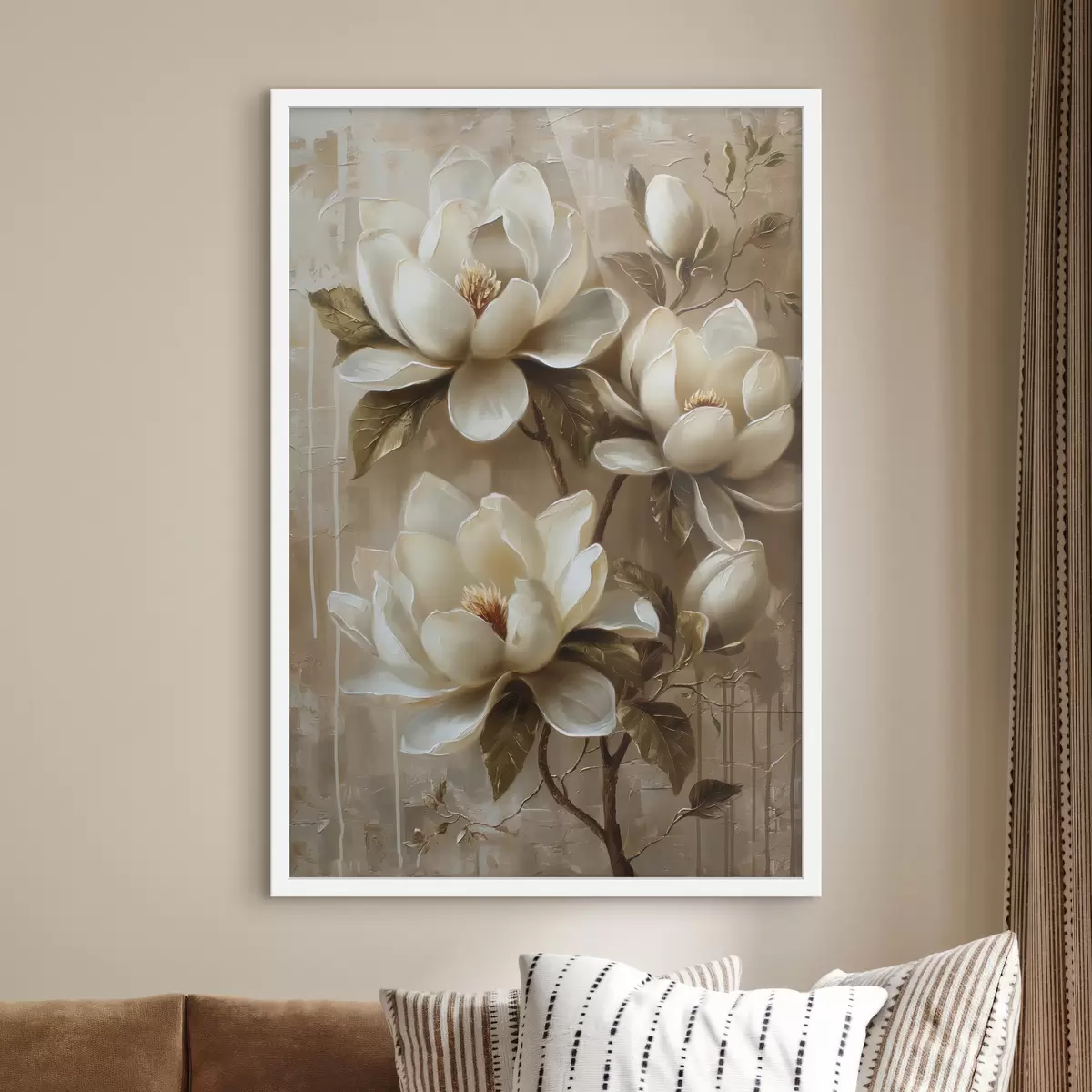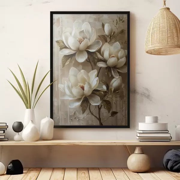 Plakatas smėlio atspalvių gėlių šakelė f40263
