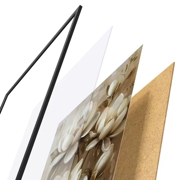 Plakatą sudaro rėmas, pleksiklas, atspausdintas vaizdas ir medžio drožlių plokštės pagrindas. Plakatą galima iš karto pakabinti ant sienos dėl kitoje pusėje esančių laikiklių.