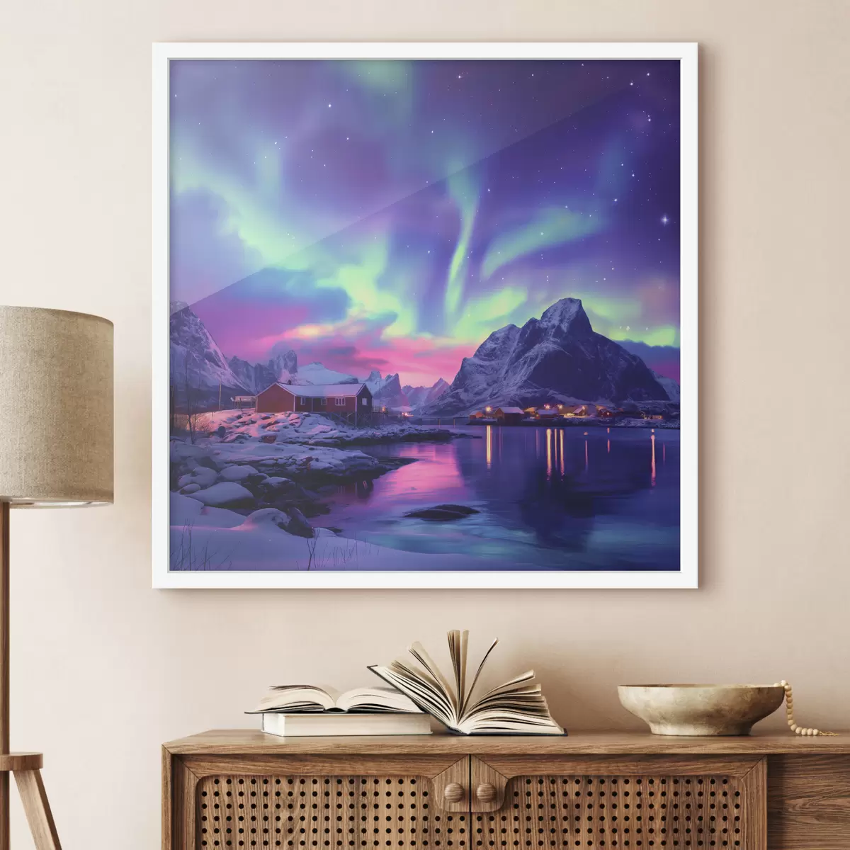 Plakatas Šiaurės pašvaistės Lofoteno salose, Norvegija gamta, žiema Ne f40298