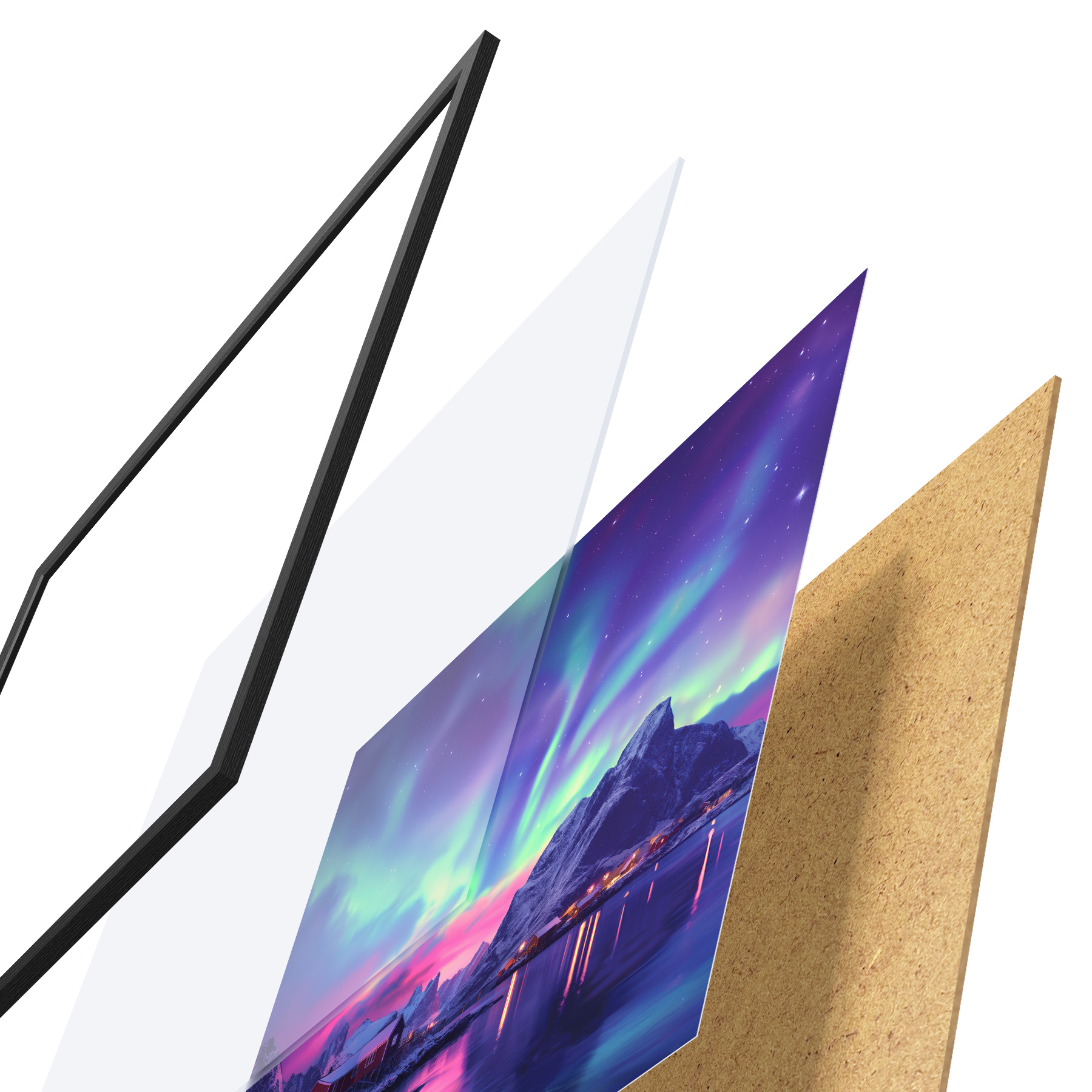 Plakatą sudaro rėmas, pleksiklas, atspausdintas vaizdas ir medžio drožlių plokštės pagrindas. Plakatą galima iš karto pakabinti ant sienos dėl kitoje pusėje esančių laikiklių.