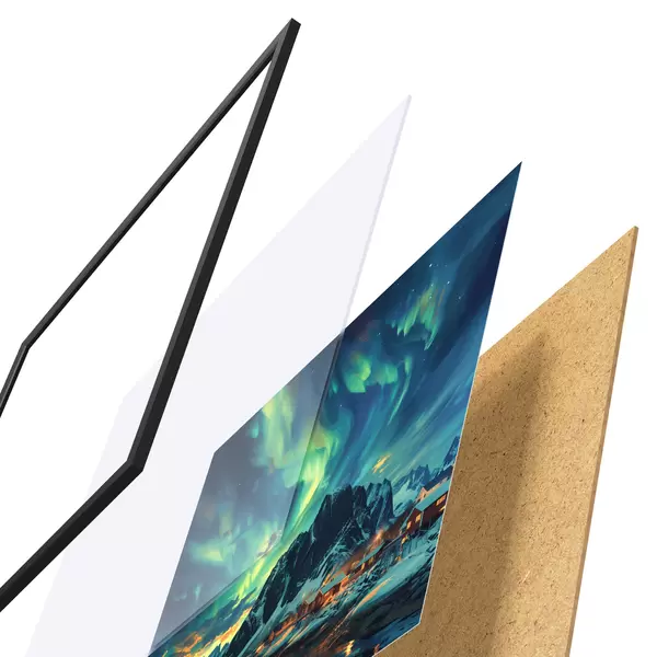 Plakatą sudaro rėmas, pleksiklas, atspausdintas vaizdas ir medžio drožlių plokštės pagrindas. Plakatą galima iš karto pakabinti ant sienos dėl kitoje pusėje esančių laikiklių.