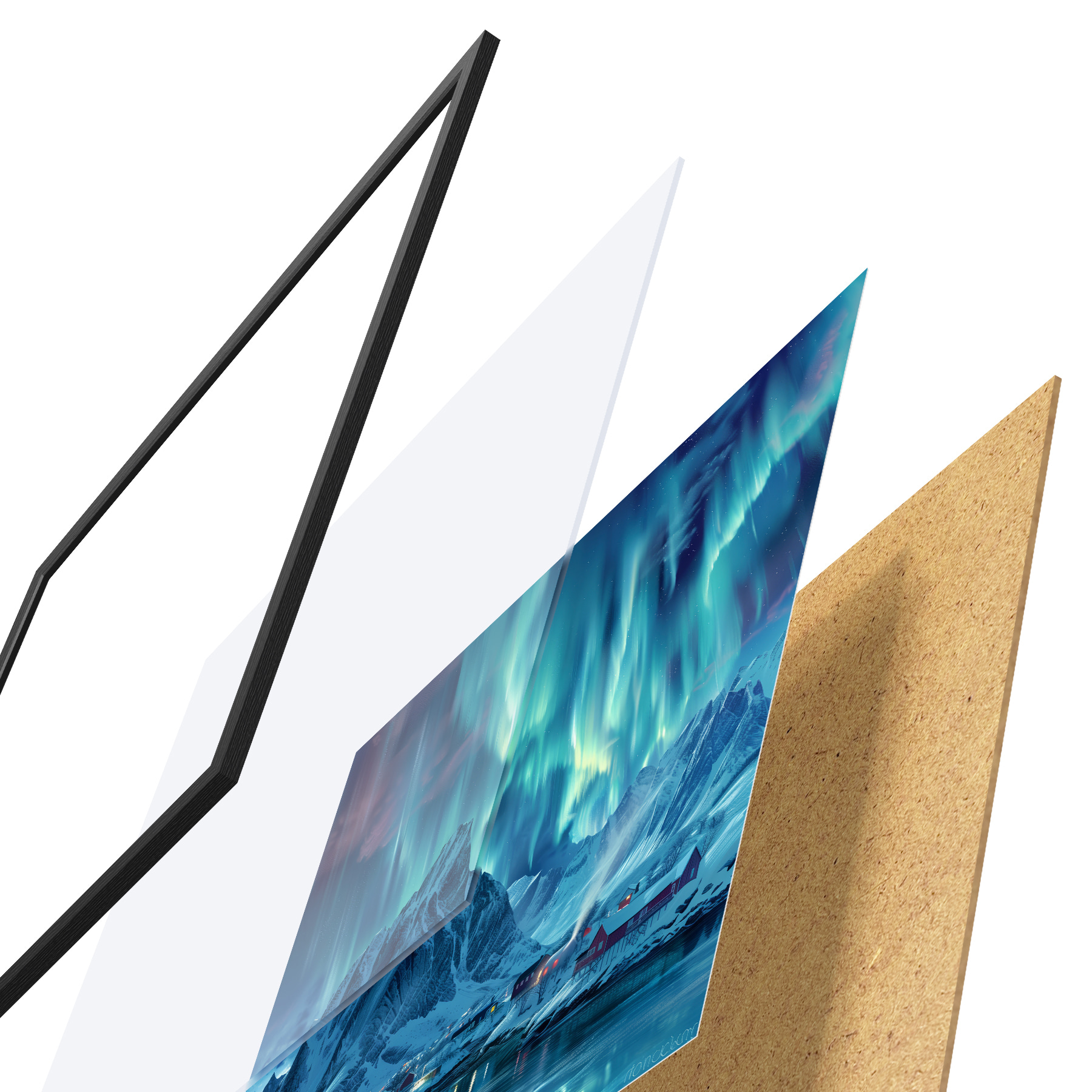 Plakatą sudaro rėmas, pleksiklas, atspausdintas vaizdas ir medžio drožlių plokštės pagrindas. Plakatą galima iš karto pakabinti ant sienos dėl kitoje pusėje esančių laikiklių.