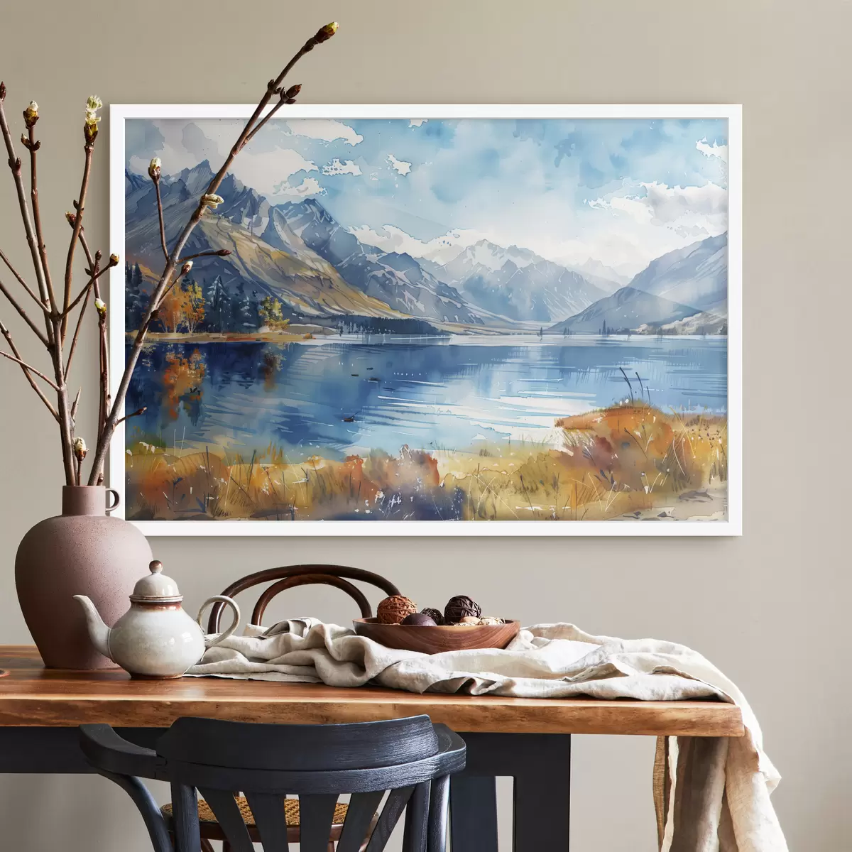 Plakatas Akvarelė kalnų kraštovaizdis, rudens spalvos f40308