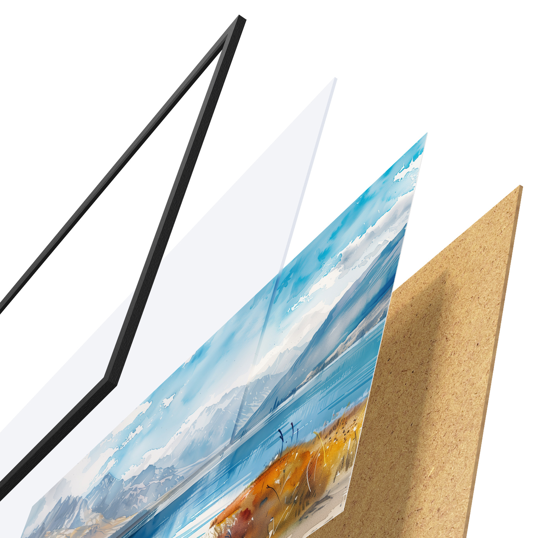 Plakatą sudaro rėmas, pleksiklas, atspausdintas vaizdas ir medžio drožlių plokštės pagrindas. Plakatą galima iš karto pakabinti ant sienos dėl kitoje pusėje esančių laikiklių.