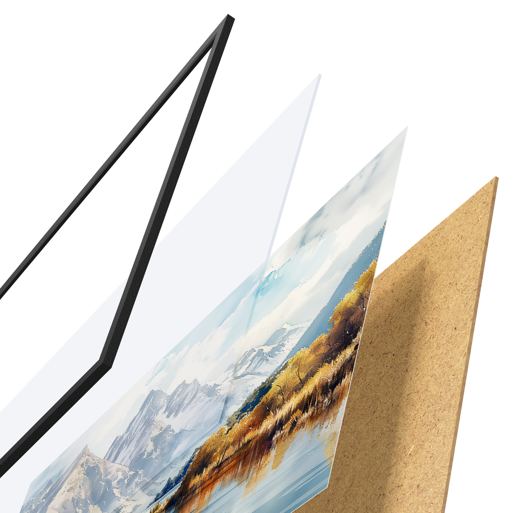 Plakatą sudaro rėmas, pleksiklas, atspausdintas vaizdas ir medžio drožlių plokštės pagrindas. Plakatą galima iš karto pakabinti ant sienos dėl kitoje pusėje esančių laikiklių.