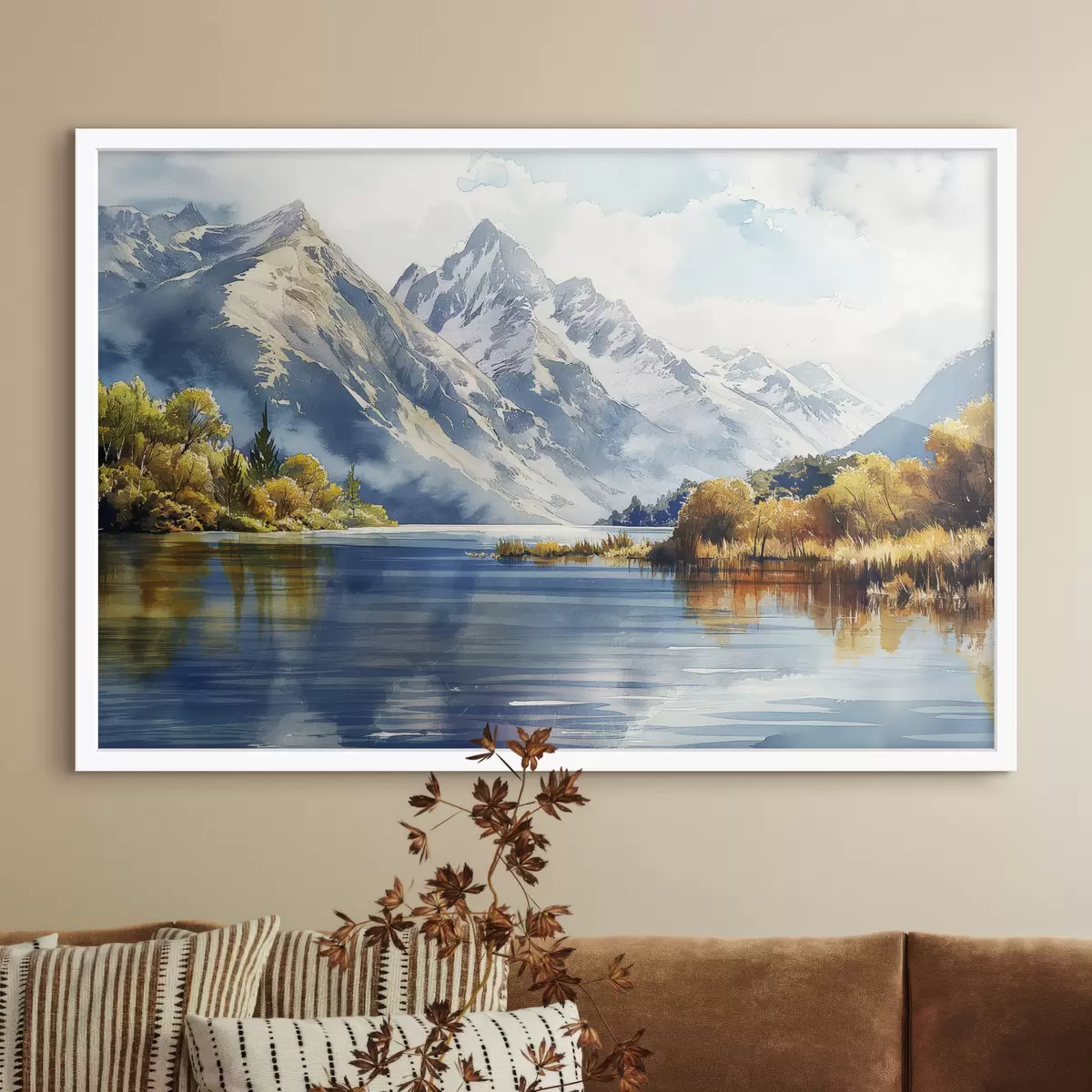 Plakatas Rudens kalnų kraštovaizdis, upė, medžiai f40309