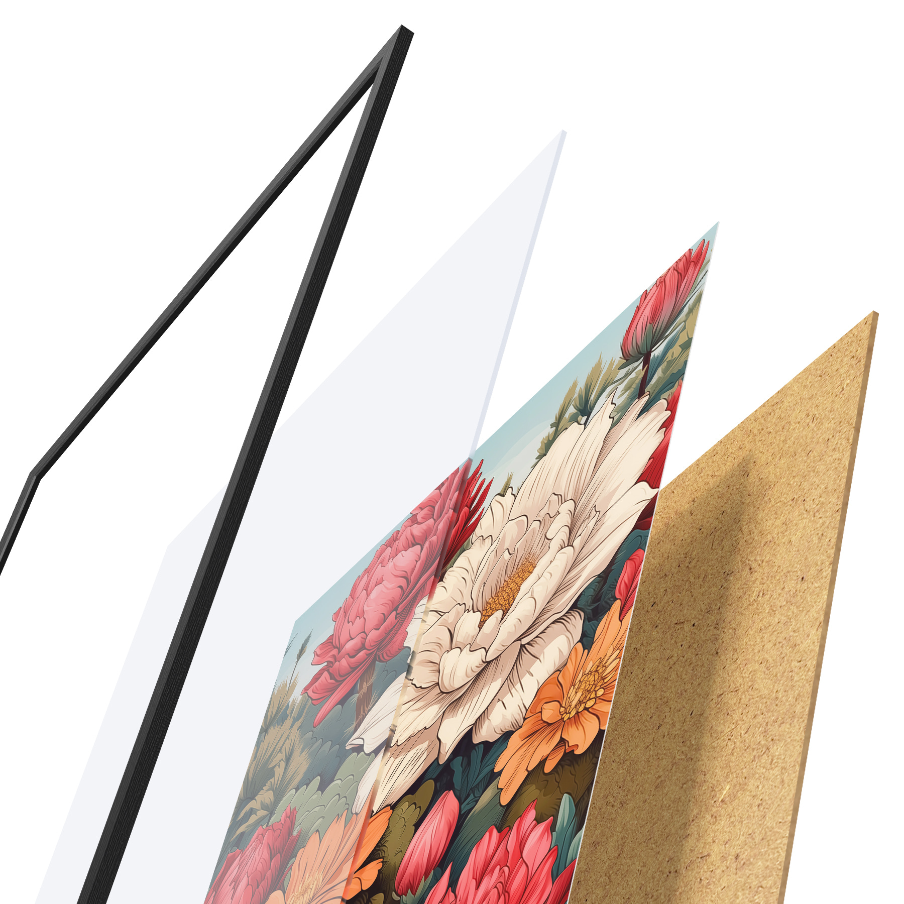 Plakatą sudaro rėmas, pleksiklas, atspausdintas vaizdas ir medžio drožlių plokštės pagrindas. Plakatą galima iš karto pakabinti ant sienos dėl kitoje pusėje esančių laikiklių.