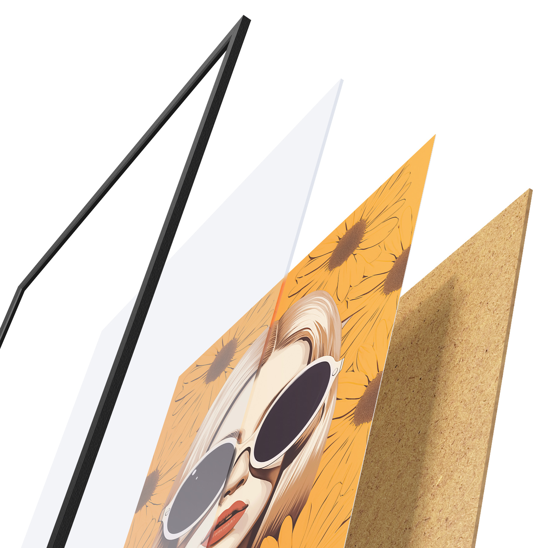 Plakatą sudaro rėmas, pleksiklas, atspausdintas vaizdas ir medžio drožlių plokštės pagrindas. Plakatą galima iš karto pakabinti ant sienos dėl kitoje pusėje esančių laikiklių.