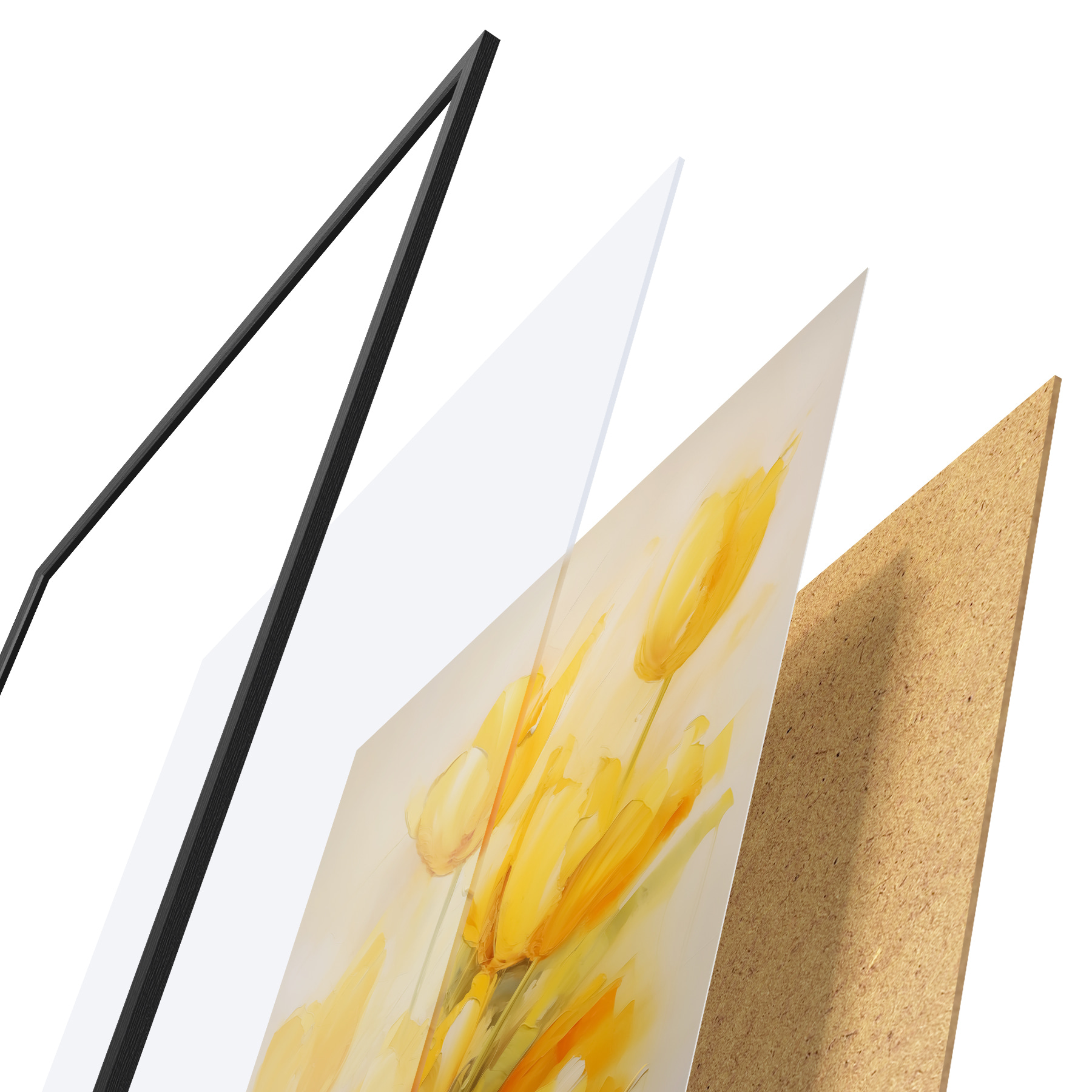 Plakatą sudaro rėmas, pleksiklas, atspausdintas vaizdas ir medžio drožlių plokštės pagrindas. Plakatą galima iš karto pakabinti ant sienos dėl kitoje pusėje esančių laikiklių.