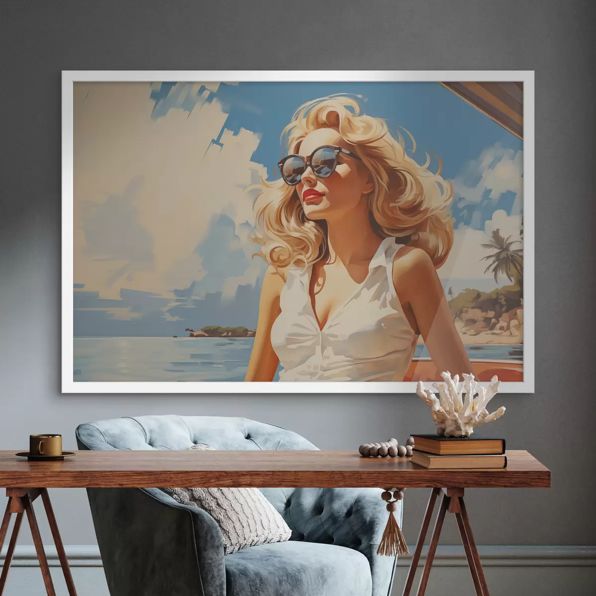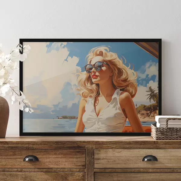 Plakatas Šviesiaplaukės merginos ant jūros fono iliustracija f40321