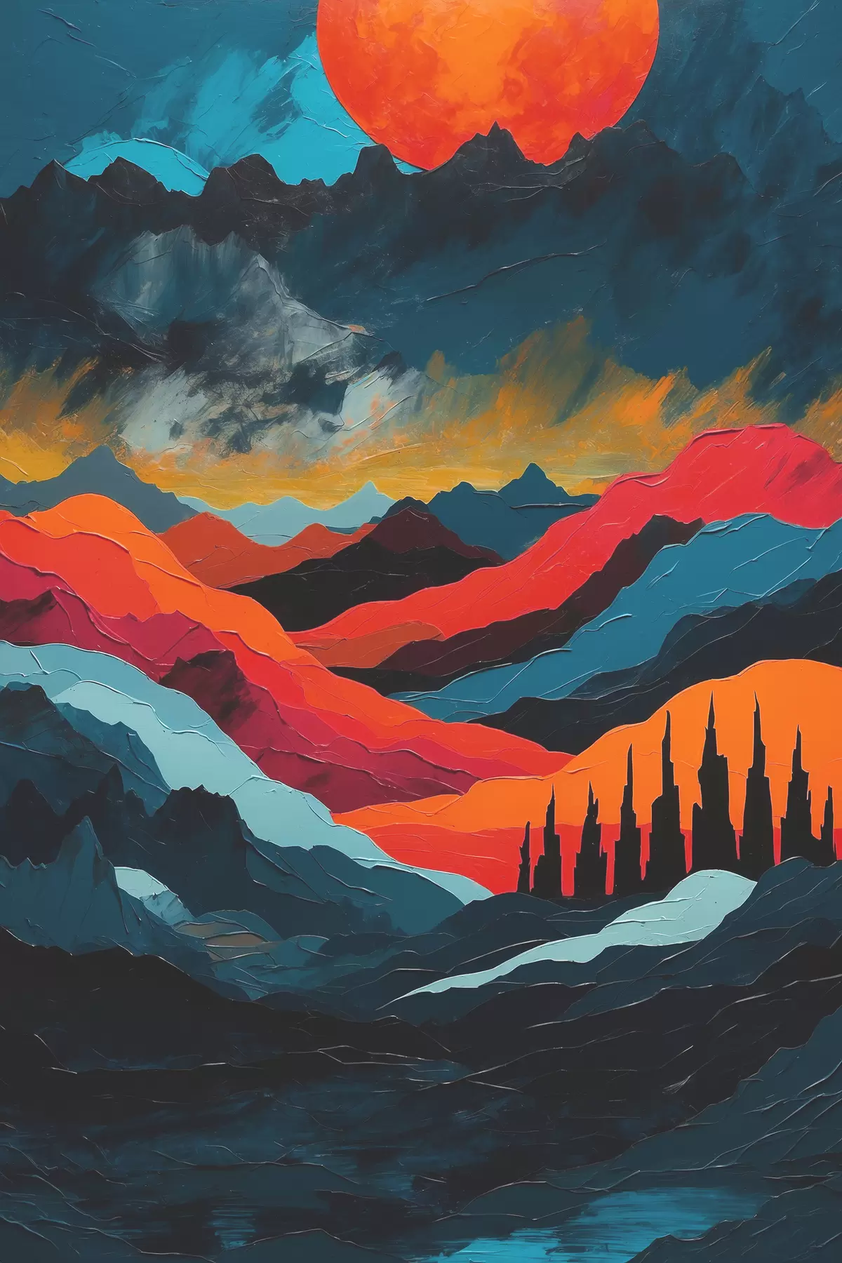 Plakatas Raudona saulė virš kalnų Ne f40322