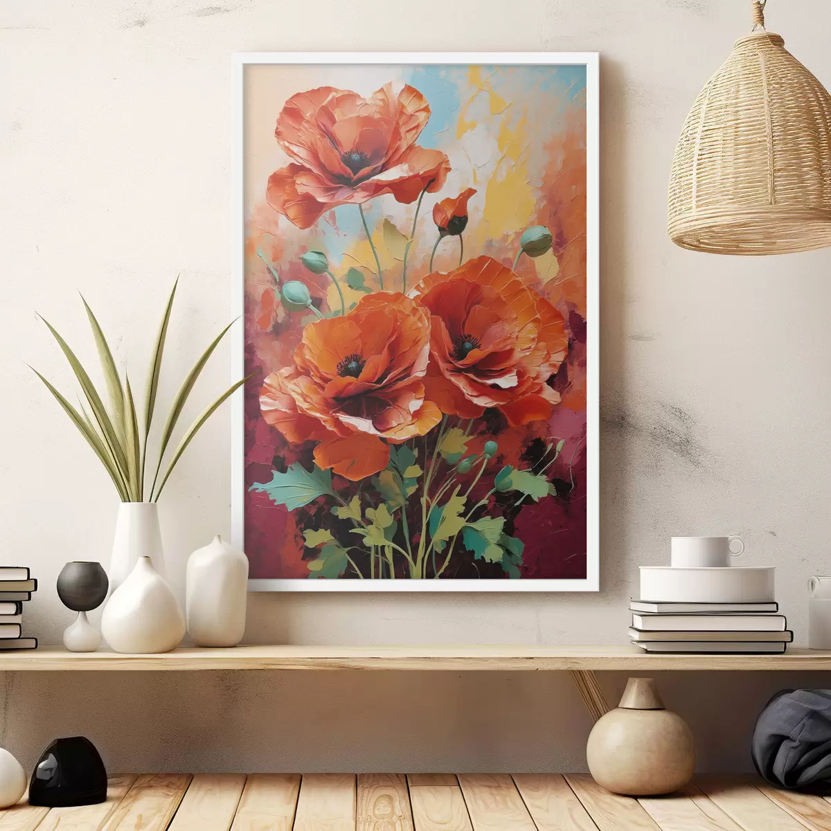 Plakatas Aguonos abstrakčiame akrilo fone Ne f40323