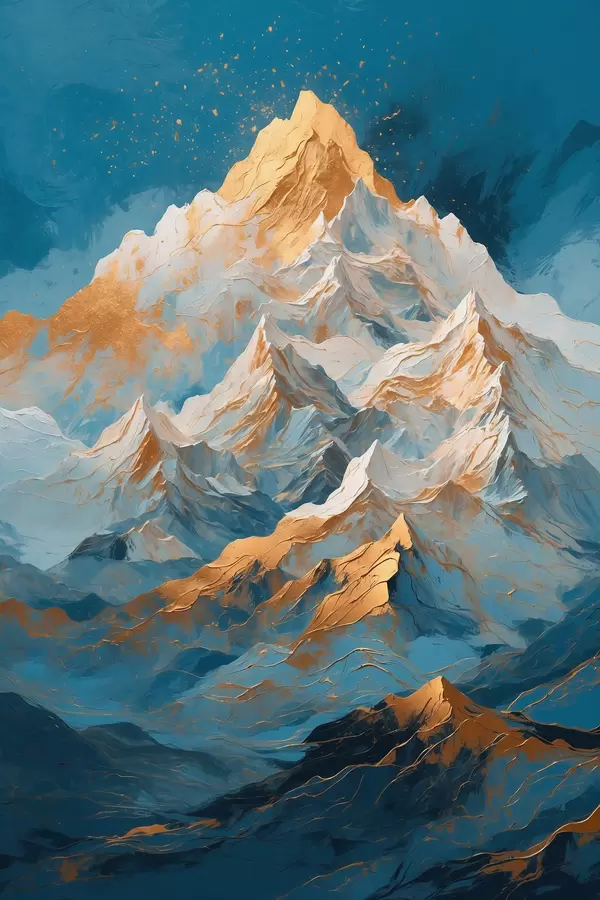 Plakatas Auksiniai kalnai mėlyname fone f40327
