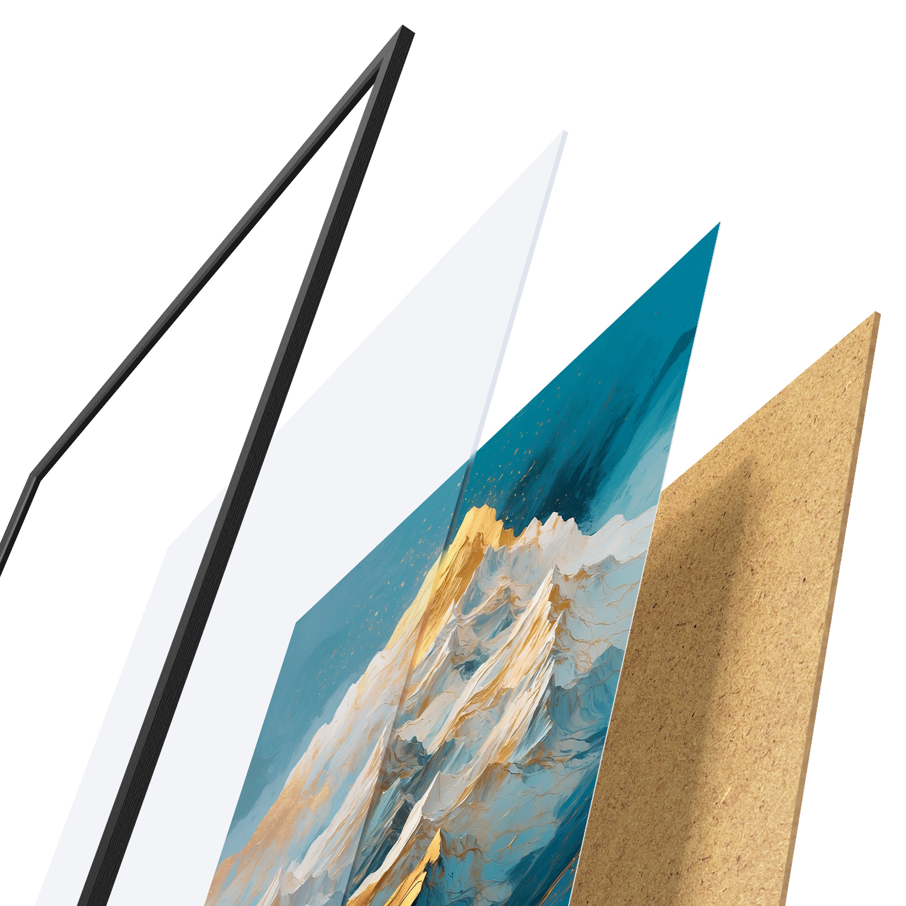 Plakatas Auksiniai kalnai mėlyname fone Ne f40327