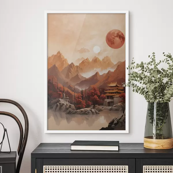 Plakatas Kinijos istorinis pastatas kalnuose f40330
