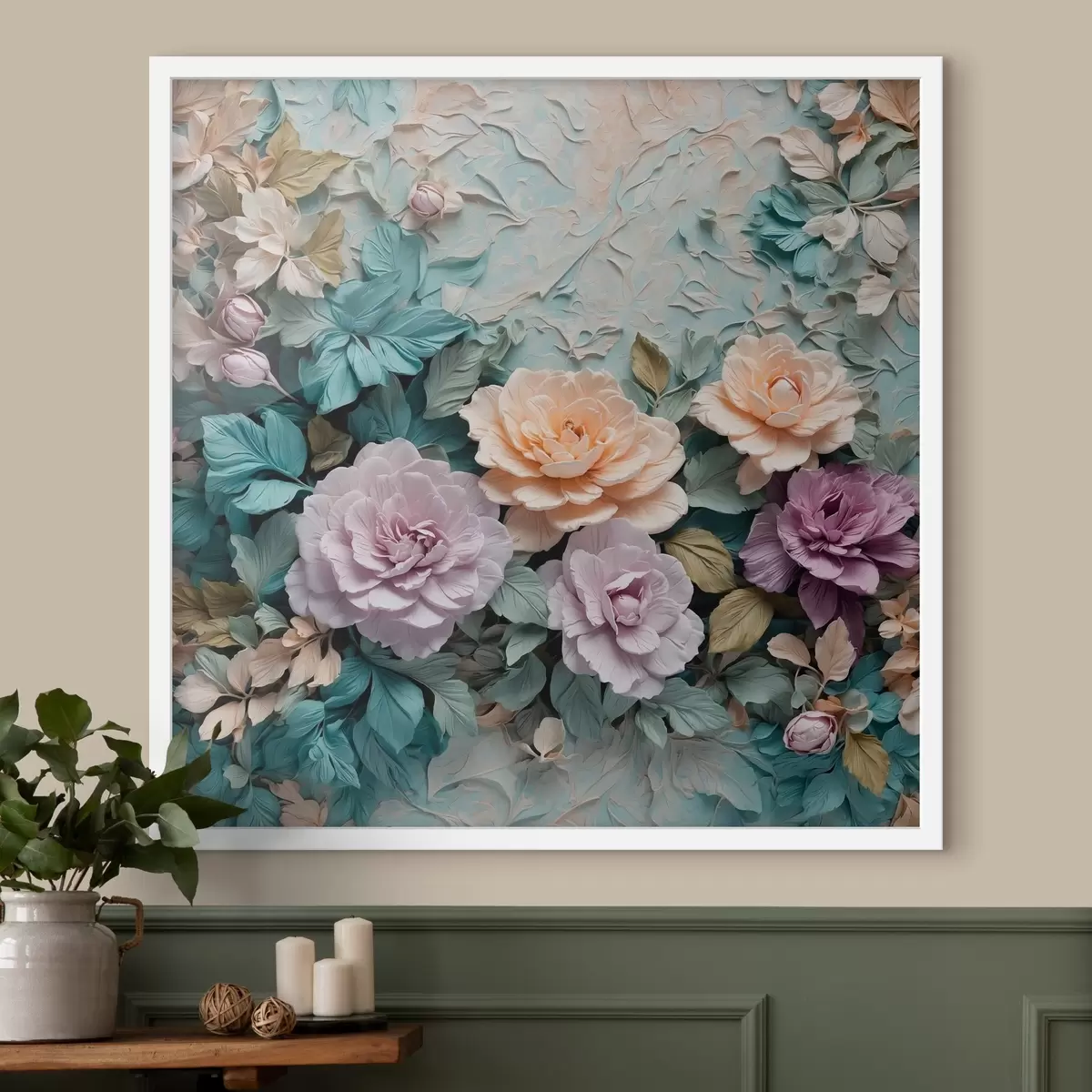 Plakatas Gėlės ir lapai abstrakčiame fone f40332