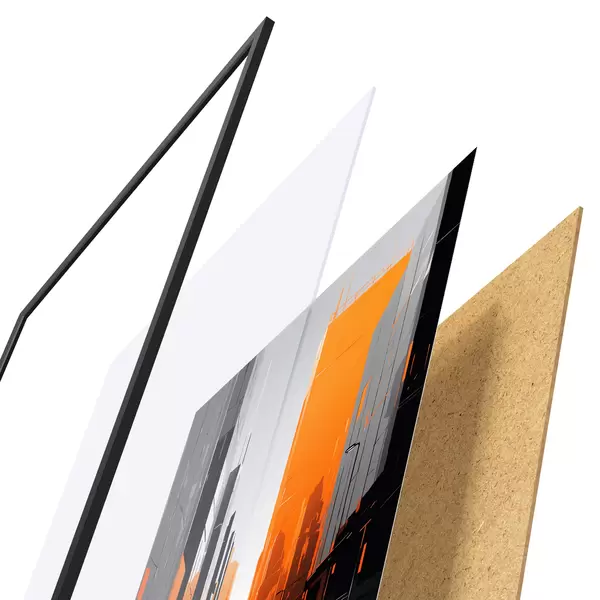 Plakatą sudaro rėmas, pleksiklas, atspausdintas vaizdas ir medžio drožlių plokštės pagrindas. Plakatą galima iš karto pakabinti ant sienos dėl kitoje pusėje esančių laikiklių.