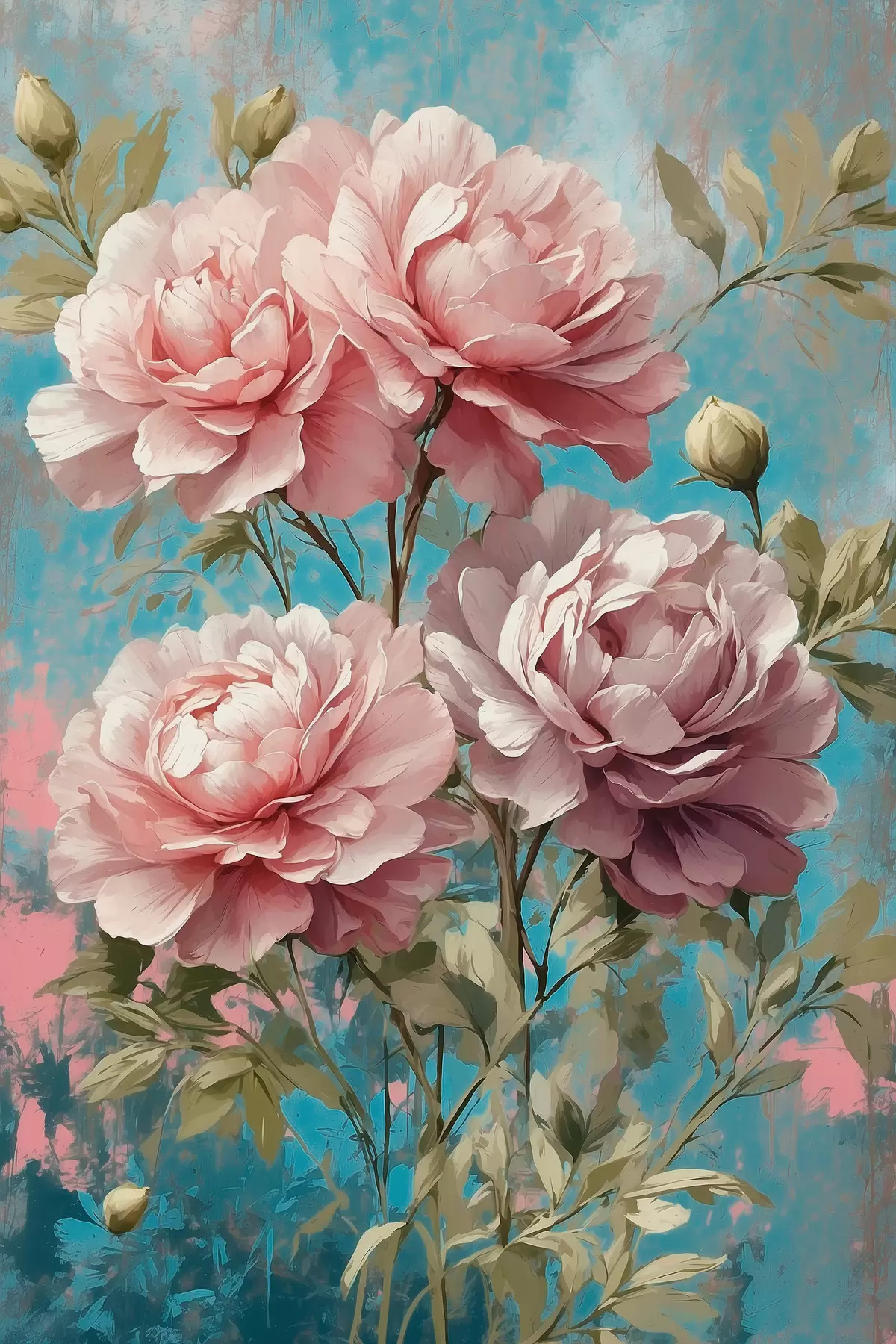 Plakatas Rožinės gėlės baltai mėlyname fone Ne f40344