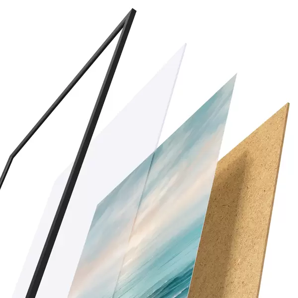 Plakatą sudaro rėmas, pleksiklas, atspausdintas vaizdas ir medžio drožlių plokštės pagrindas. Plakatą galima iš karto pakabinti ant sienos dėl kitoje pusėje esančių laikiklių.