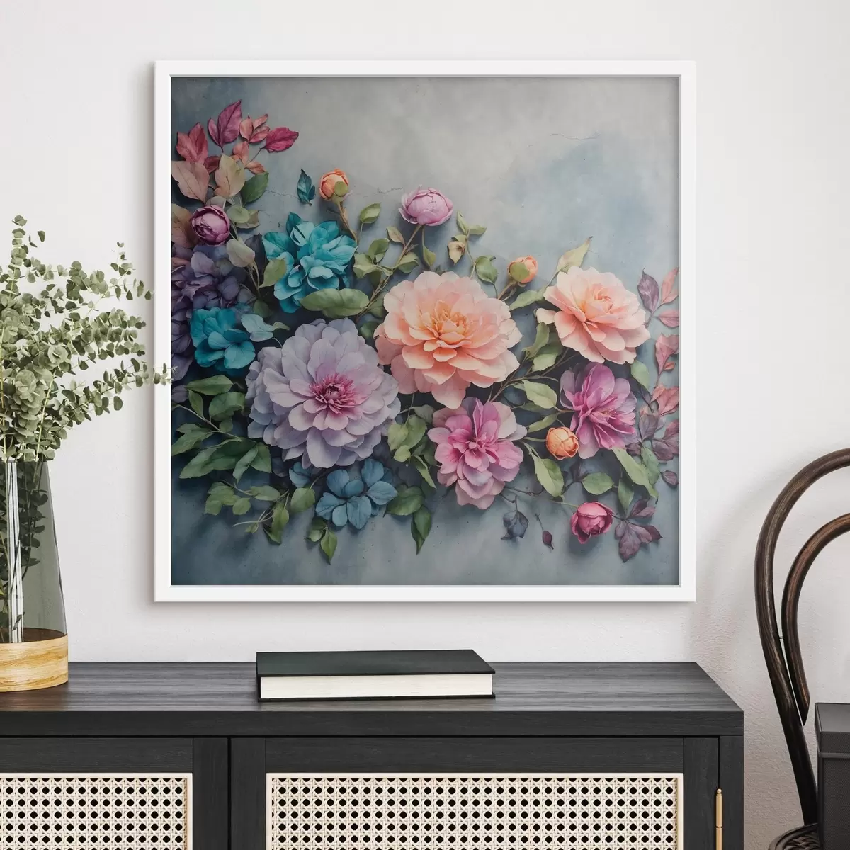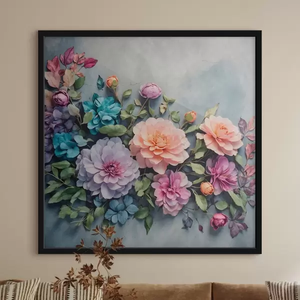 Plakatas Gėlės ir lapai mėlyname fone f40346
