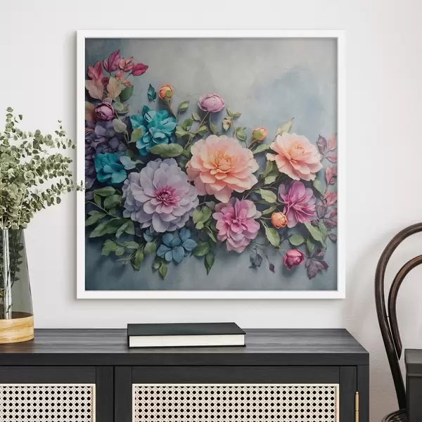 Plakatas Gėlės ir lapai mėlyname fone Ne f40346