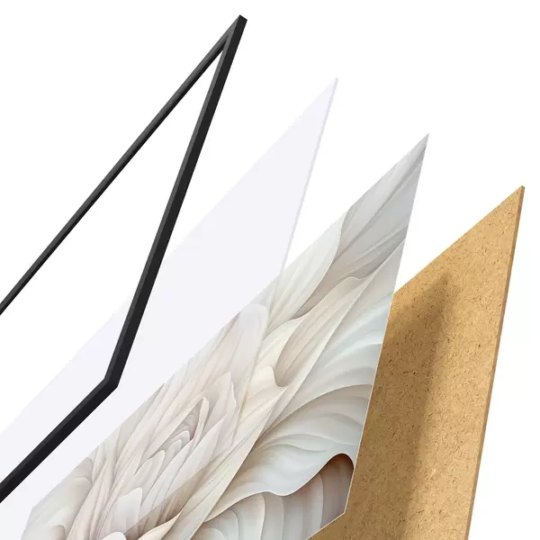 Plakatą sudaro rėmas, pleksiklas, atspausdintas vaizdas ir medžio drožlių plokštės pagrindas. Plakatą galima iš karto pakabinti ant sienos dėl kitoje pusėje esančių laikiklių.