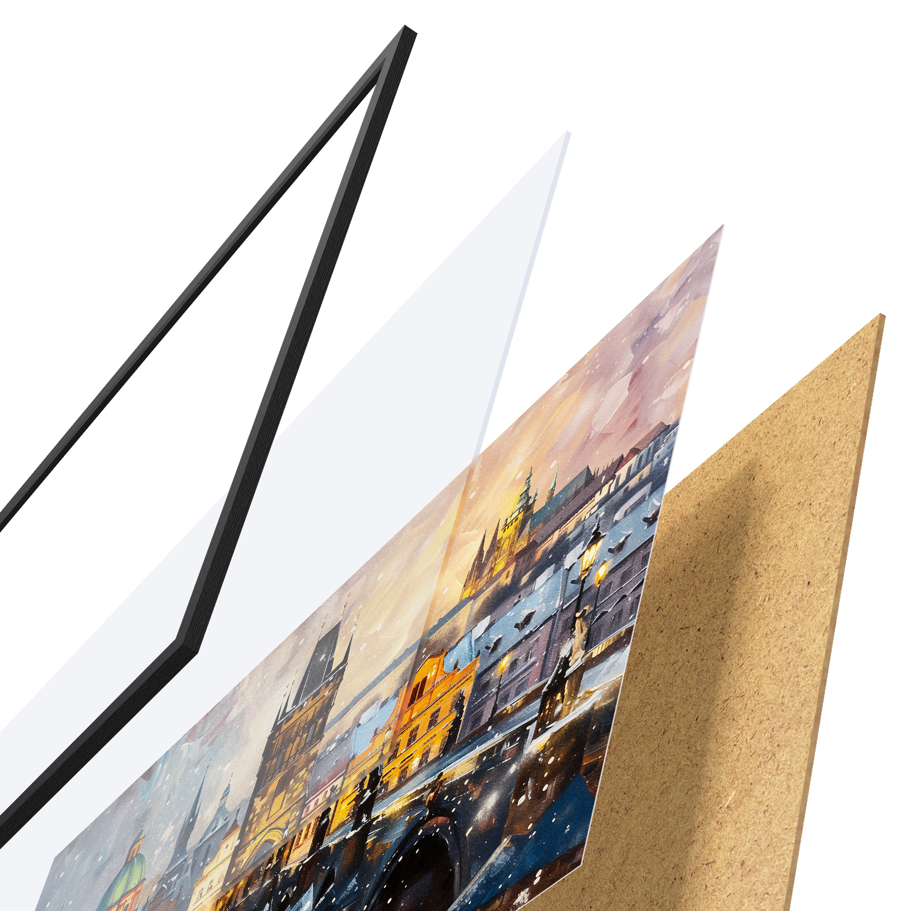 Plakatą sudaro rėmas, pleksiklas, atspausdintas vaizdas ir medžio drožlių plokštės pagrindas. Plakatą galima iš karto pakabinti ant sienos dėl kitoje pusėje esančių laikiklių.