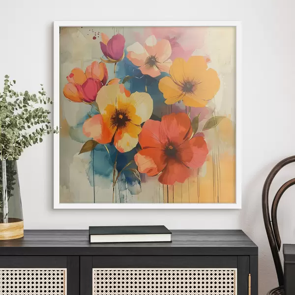 Plakatas Akvarelės gėlės abstrakčiame fone f40371