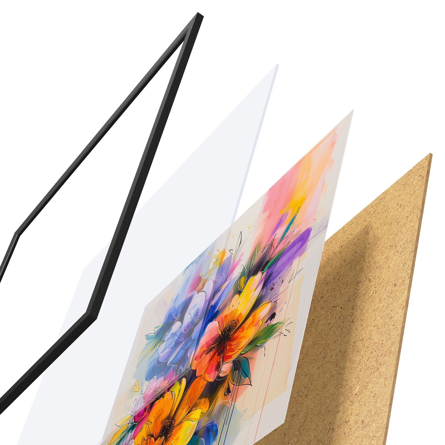 Plakatą sudaro rėmas, pleksiklas, atspausdintas vaizdas ir medžio drožlių plokštės pagrindas. Plakatą galima iš karto pakabinti ant sienos dėl kitoje pusėje esančių laikiklių.