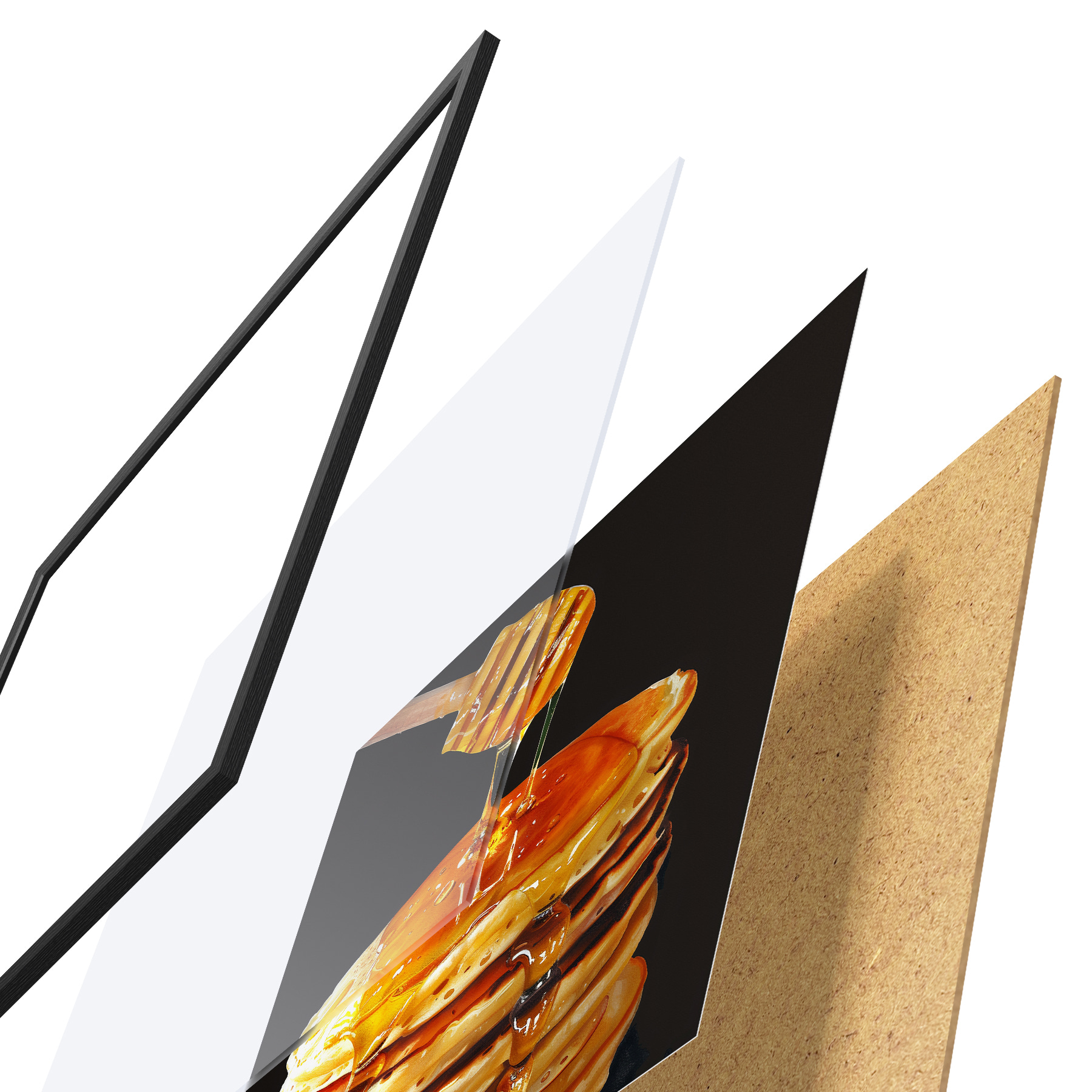 Plakatą sudaro rėmas, pleksiklas, atspausdintas vaizdas ir medžio drožlių plokštės pagrindas. Plakatą galima iš karto pakabinti ant sienos dėl kitoje pusėje esančių laikiklių.