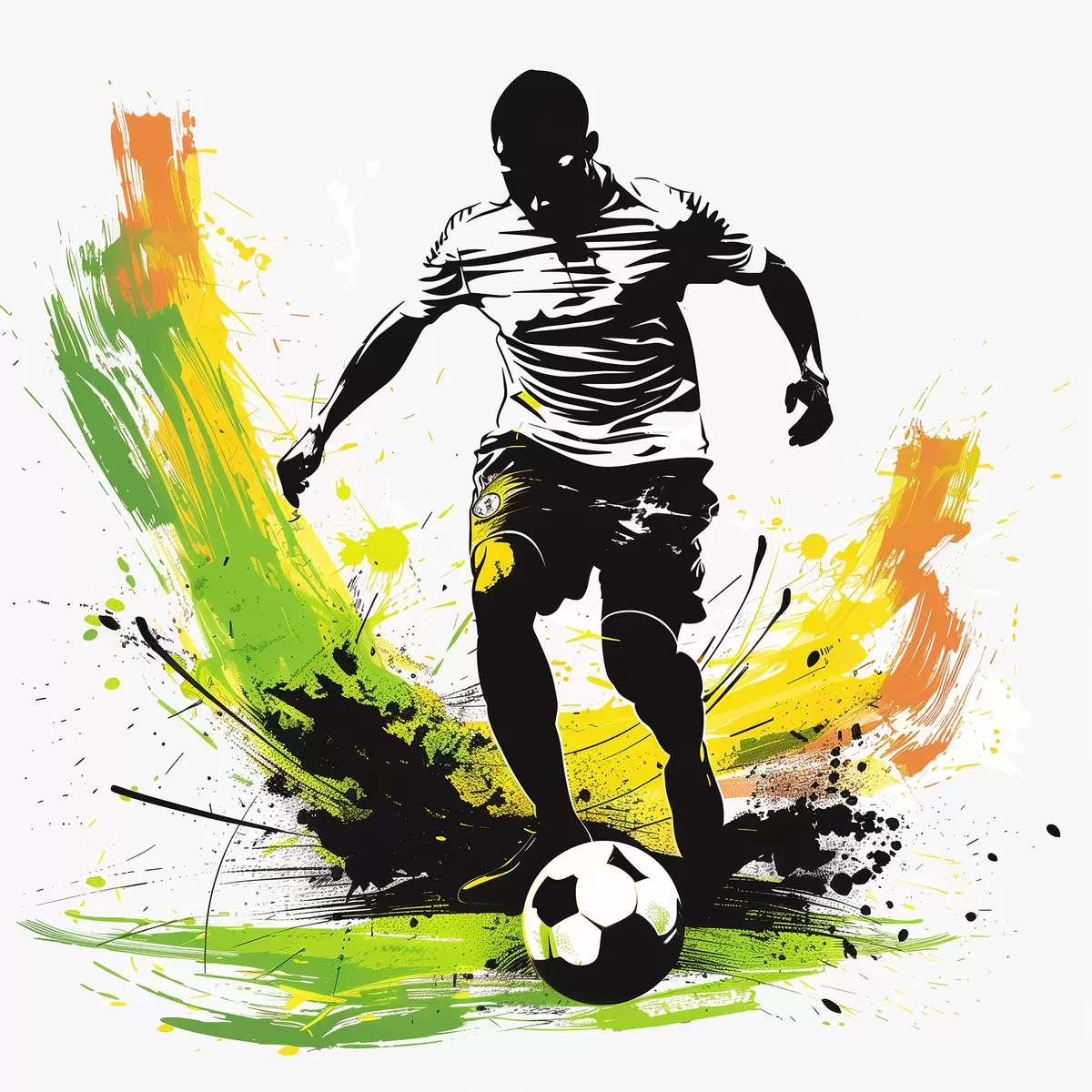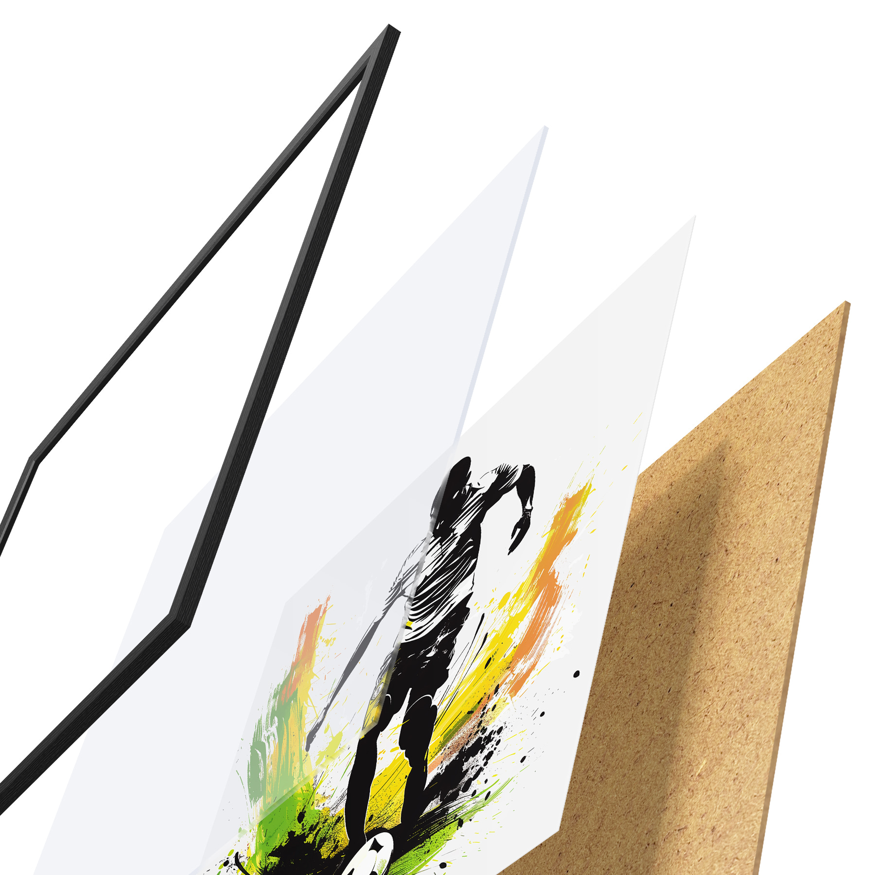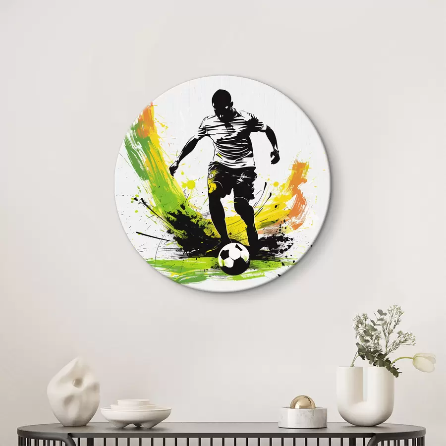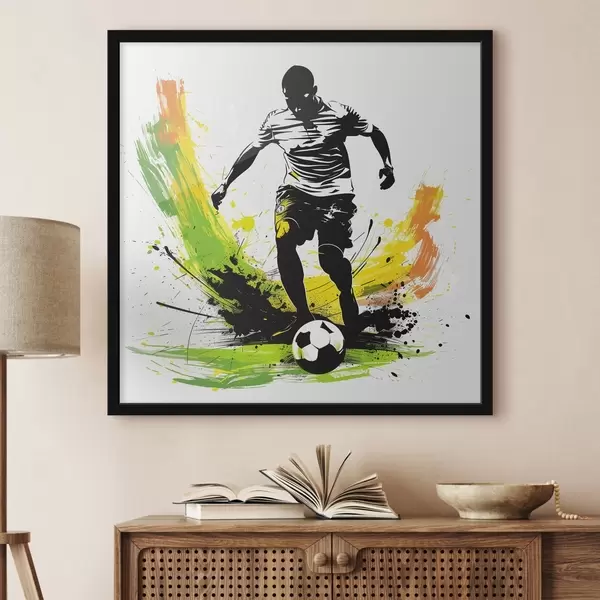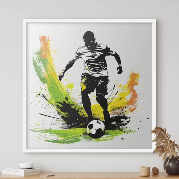 Plakatas Futbolo žaidėjas spalvingų dėmių fone Ne f40381